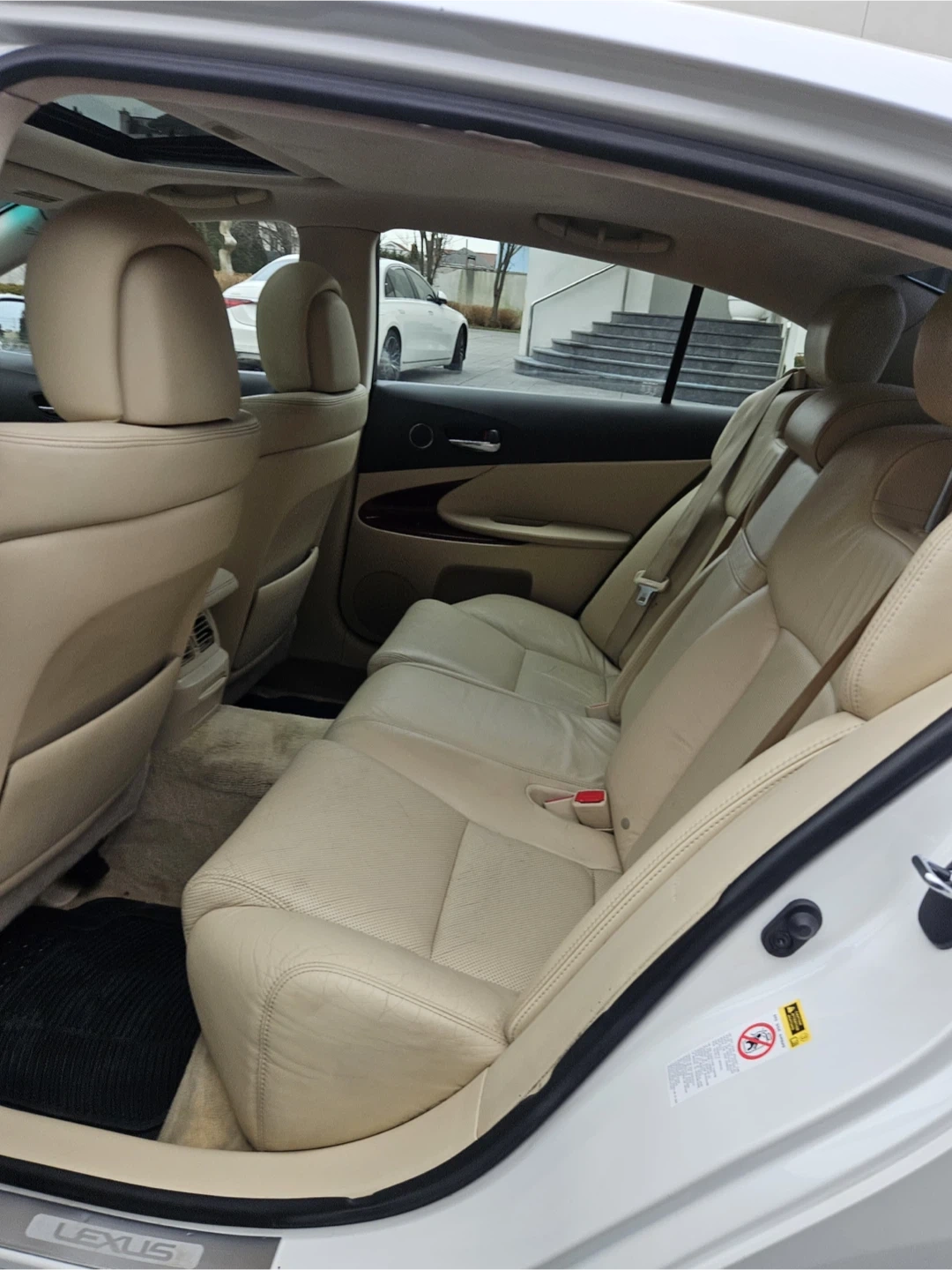 White Lexus GS 350 AWD sedan with a tan leather interior. Features a sunroof and premium wheels. This luxury sedan offers a comfortable ride and reliable performance.miles125k