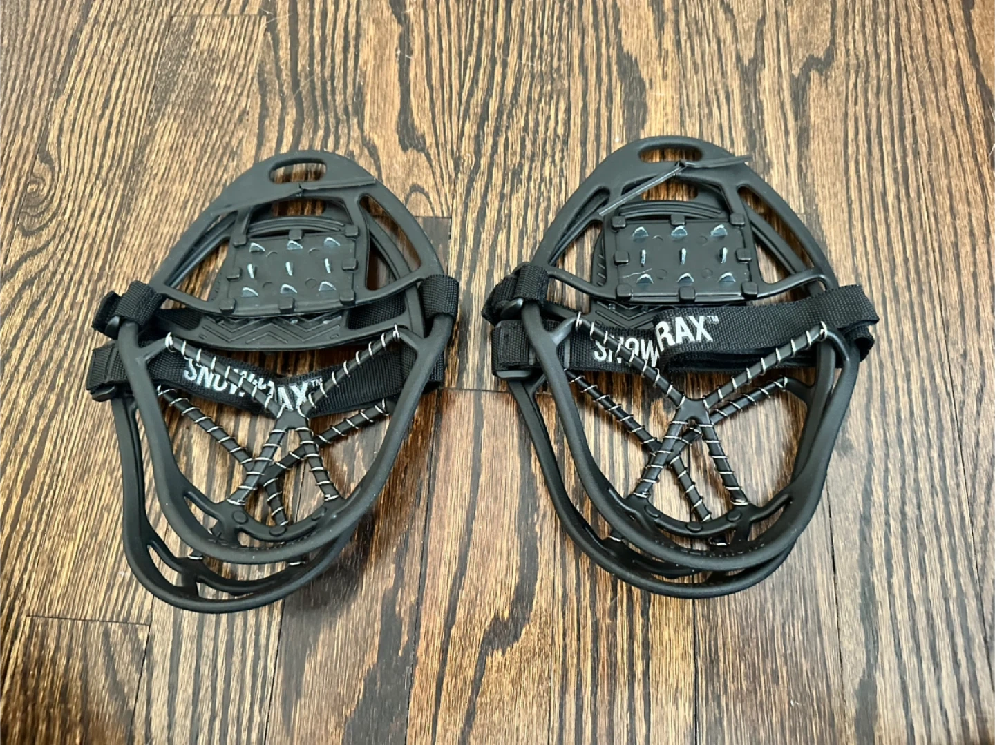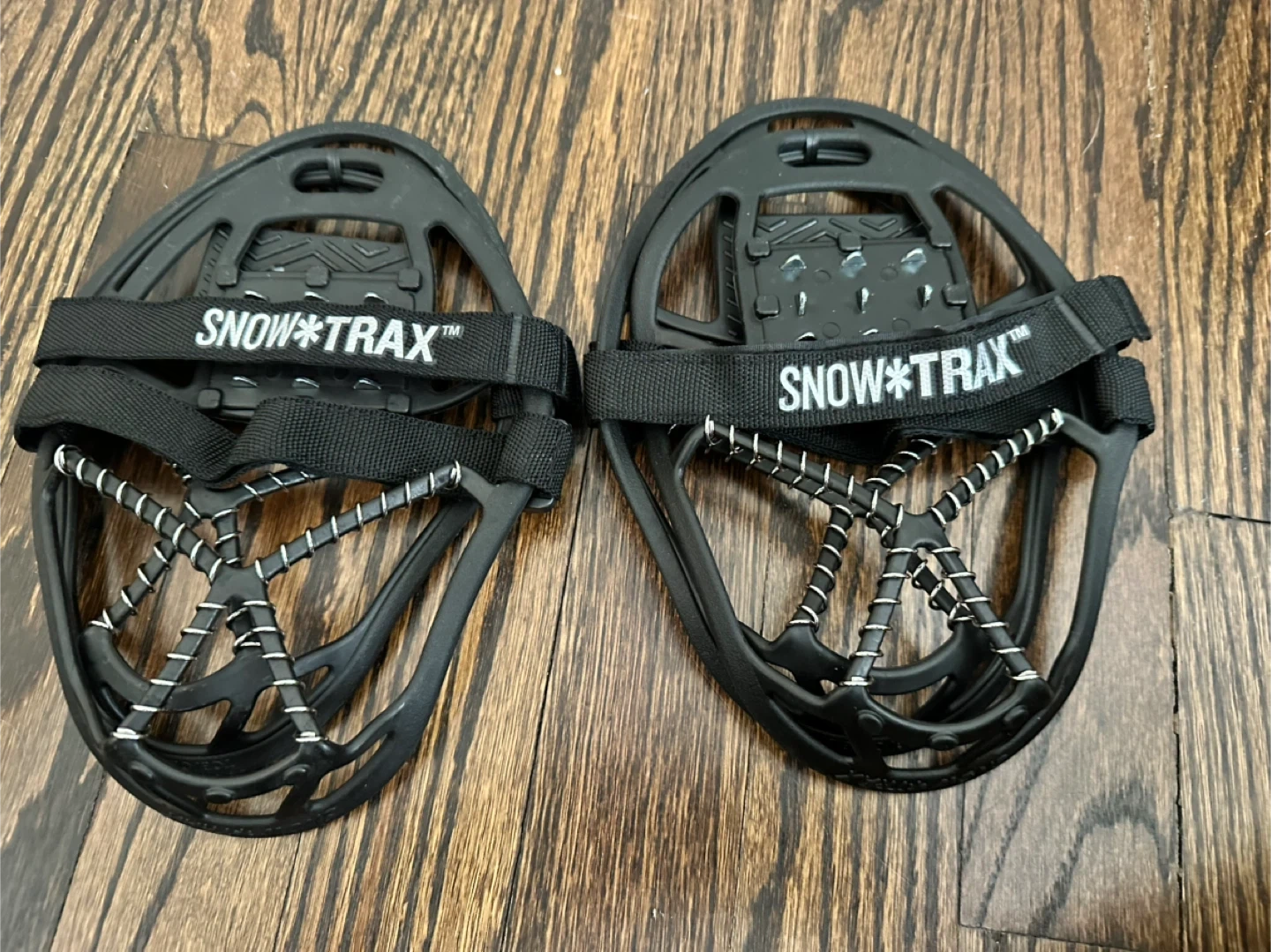 These SNOWTRAX ice cleats attach to your shoes for better traction on ice and snow. They're made of durable black material with metal coils for grip. Easy to put on and take off! Two pairs sold together or separate, make an offer. Never been worn!