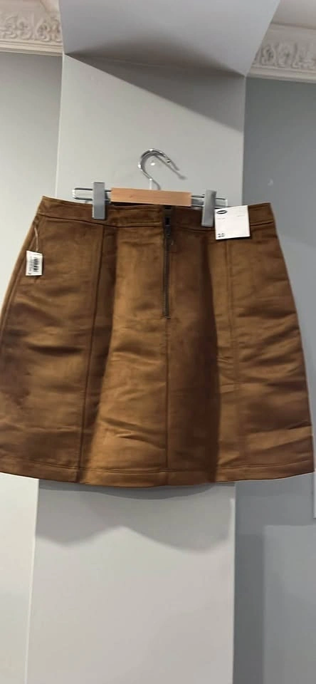New Old Navy skirt. Brown faux suede material. Size 10. Has cool back zipper and front pockets. Never worn. Tags on.