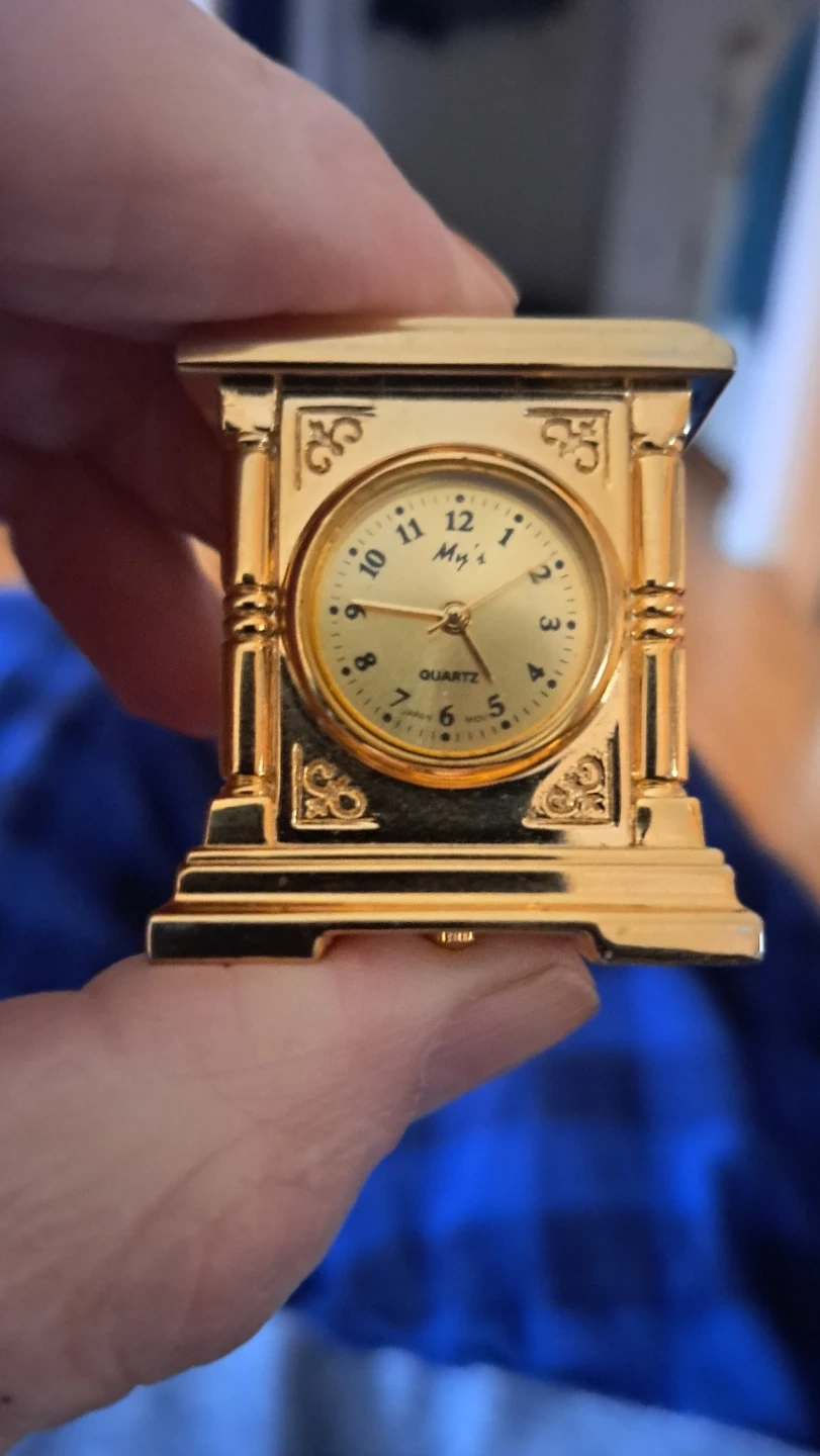 Buy & SellMy's Quartz Miniature ClockMy's Quartz Miniature Clock$20Miniature gold-tone clock with a quartz movement. Features a classic design with decorative columns. Battery operated. Needs a new battery WHERE TO MEETtawaView MapSELLERverifiedWayneTawa1086 reviews0 chats·0 favorites·8 viewsSEND CHAT TO SELLERHi Wayne! I’m interested in your listing.Hi Wayne! I’m interested in your listing.Get the Karrot app to chatSign In to chat