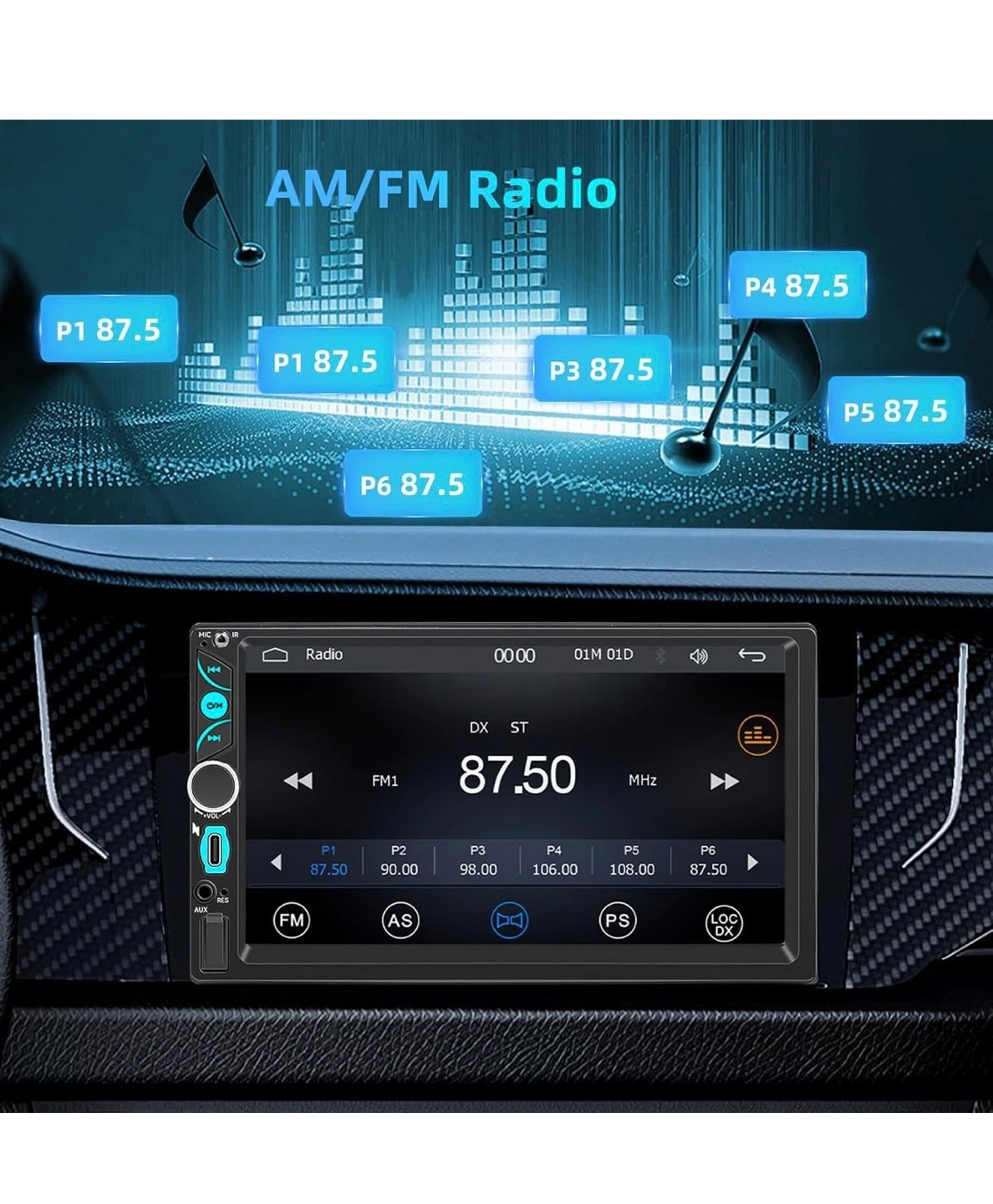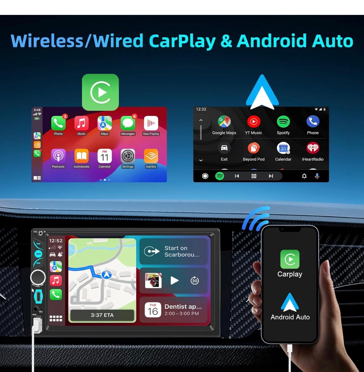 7" Wireless Double Din Car Stereo Apple CarPlay Android CA5