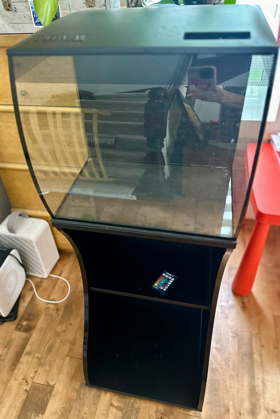 Fluval Flex 15 Gallon Aquarium Kit with matching Stand in black. This kit is in EUC and is an awesome aesthetically pleasing choice to start your own freshwater aquarium.