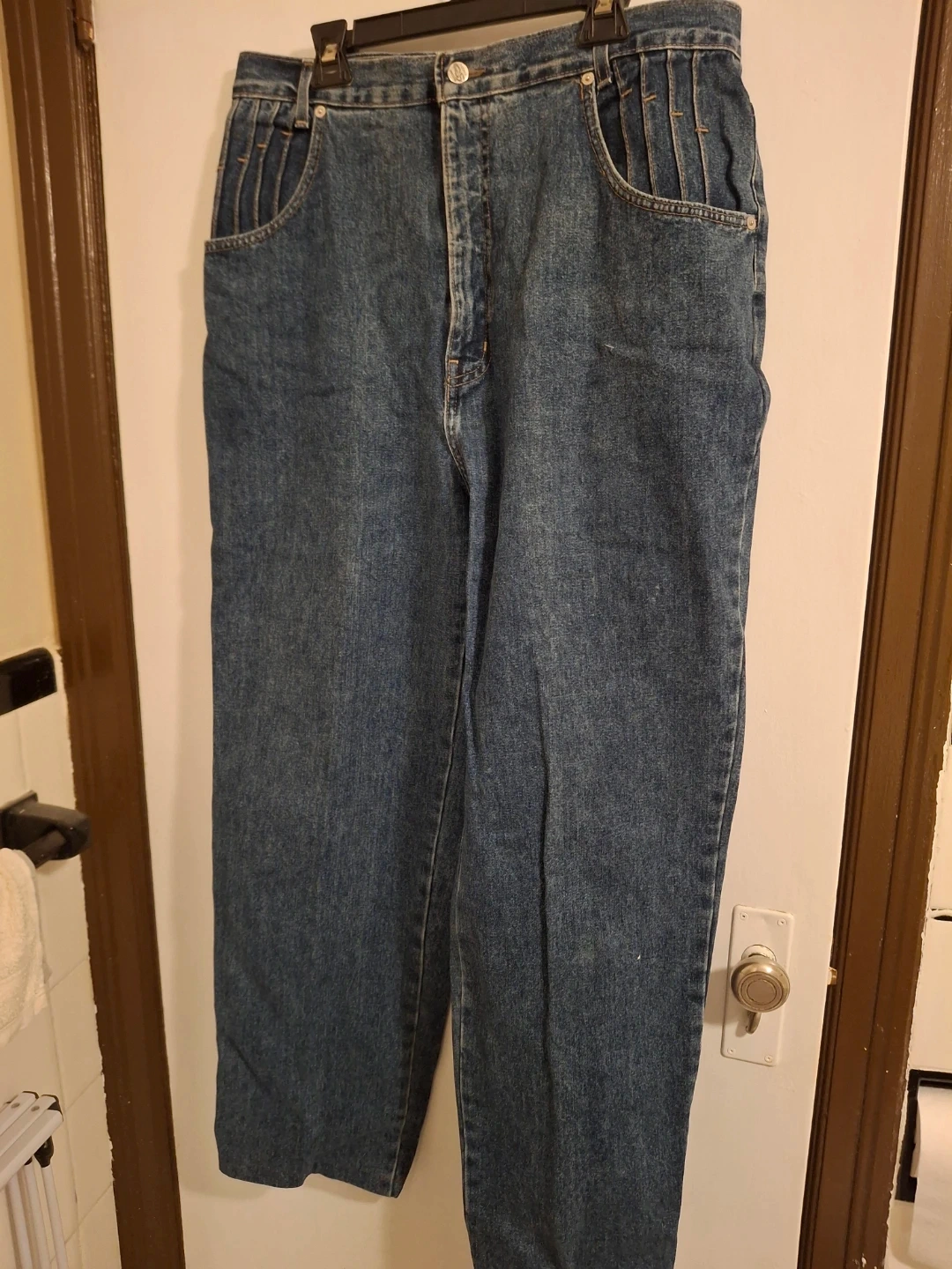 Selling made in Canada jeans, size 16. Brand is French Dressing Jeanswear Paris. 100% cotton. There are two pockets at the front; none in the back. Excellent condition (just needs ironing)