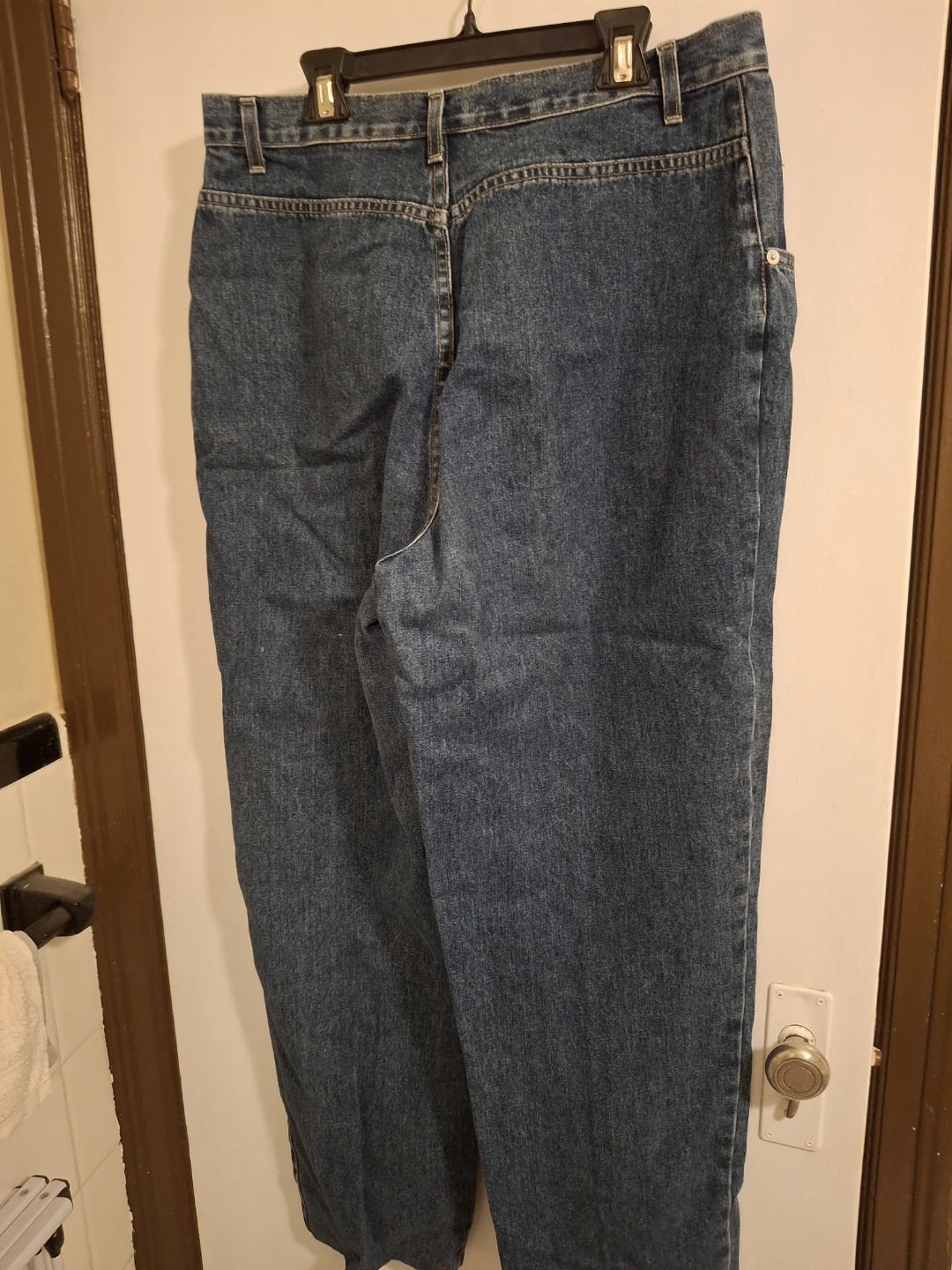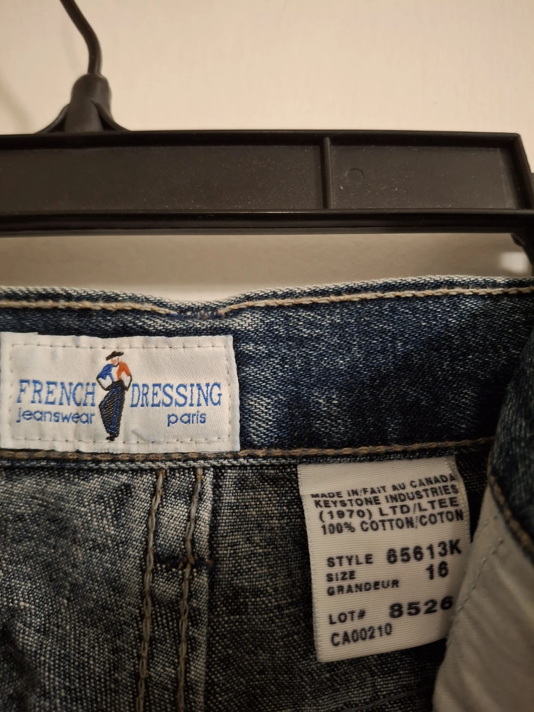 Selling made in Canada jeans, size 16. Brand is French Dressing Jeanswear Paris. 100% cotton. There are two pockets at the front; none in the back. Excellent condition (just needs ironing)