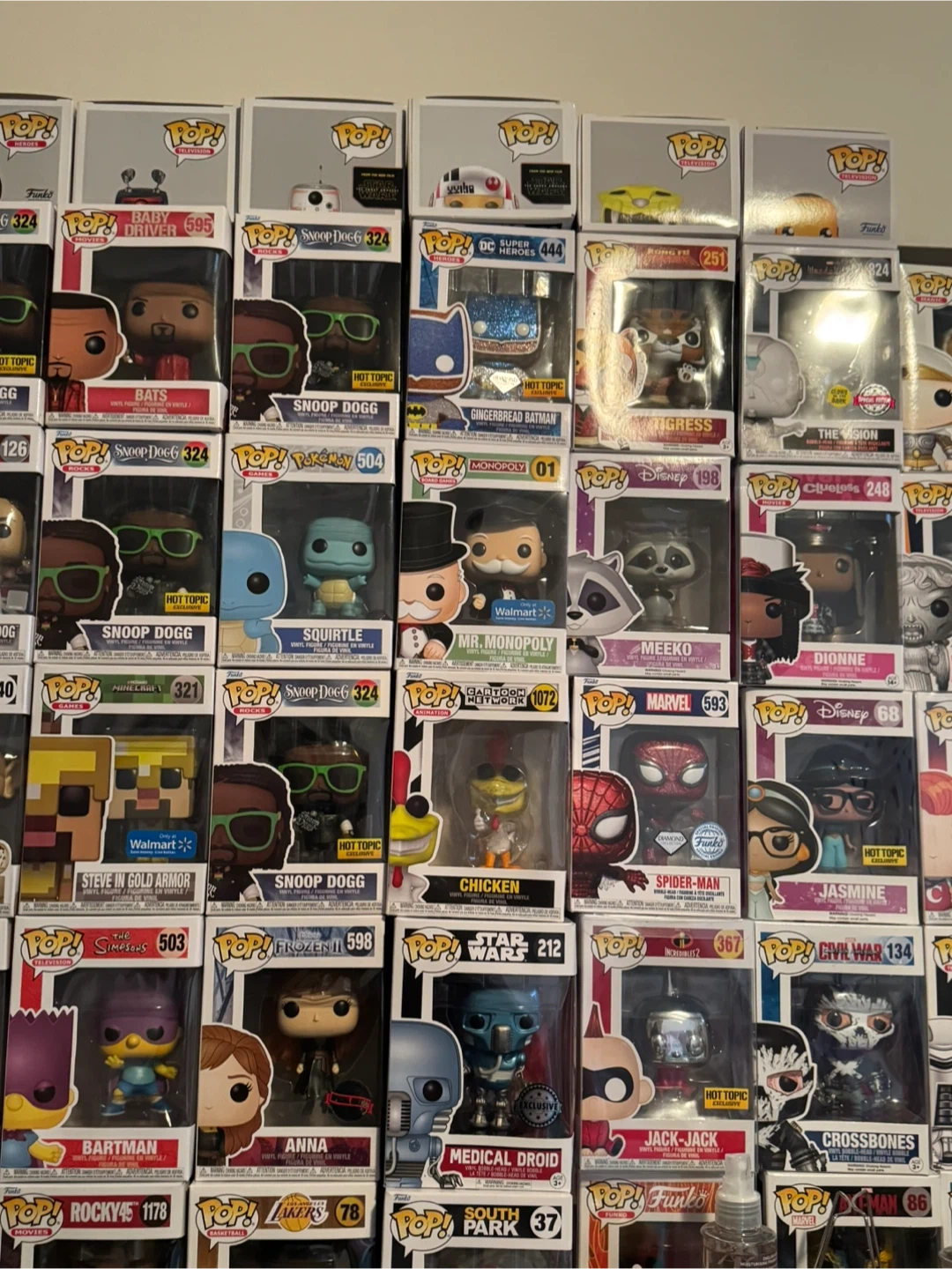 This is a collection of various Funko Pop! vinyl figures, featuring popular characters from different franchises. Each figure is a collectible item, typically standing around 3.75 inches tall. They're great for display and collecting!
