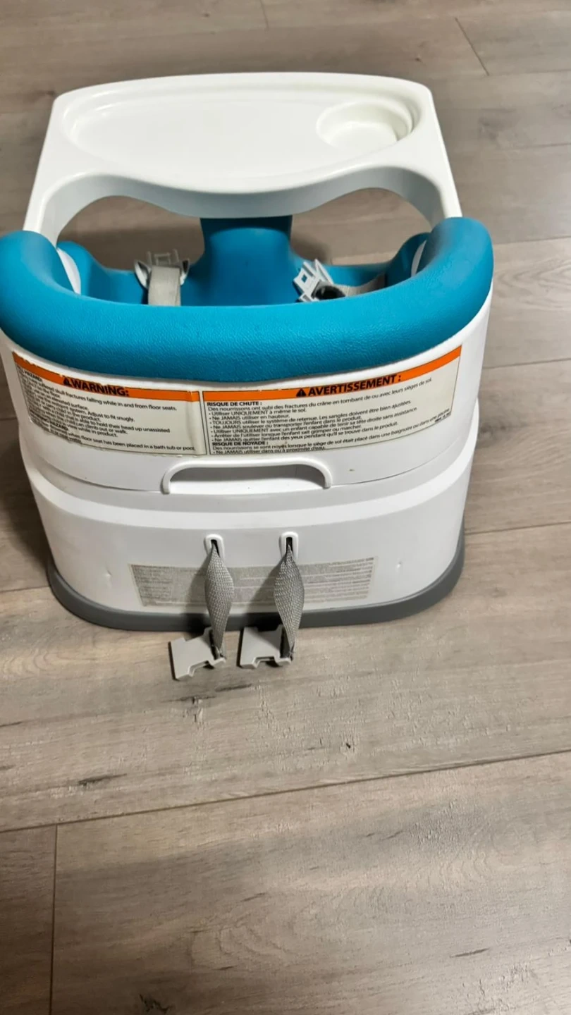 This Ingenuity booster seat makes mealtime easier. It features a removable tray with a cup holder. Safety straps are included for secure seating. It's great for feeding your little one at the table.