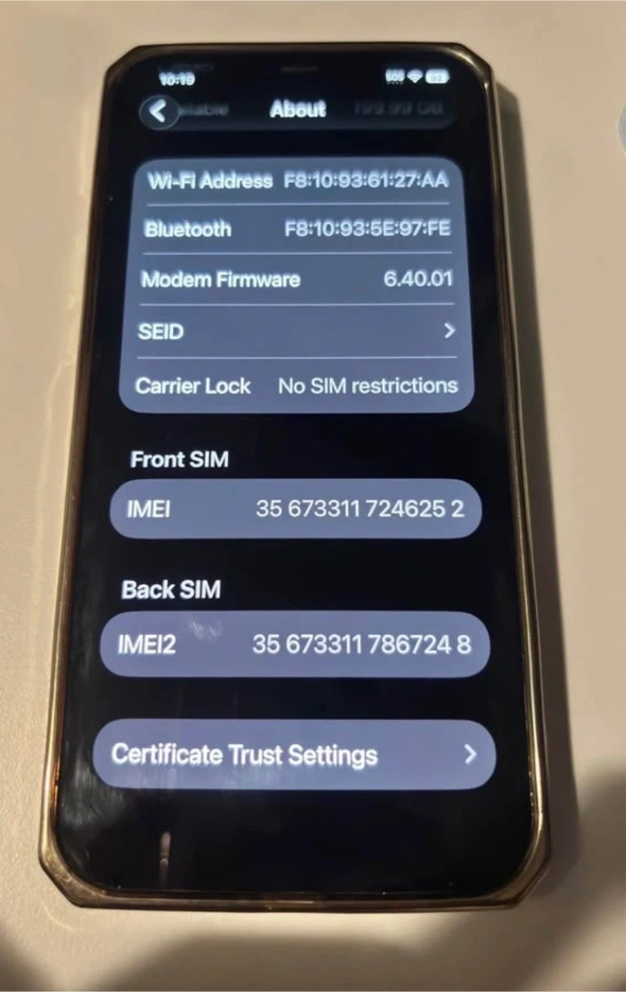 Selling an Apple iPhone 12 Pro Max in gold with 256GB storage. Maximum battery capacity is 82%. It's unlocked with no SIM restrictions.
