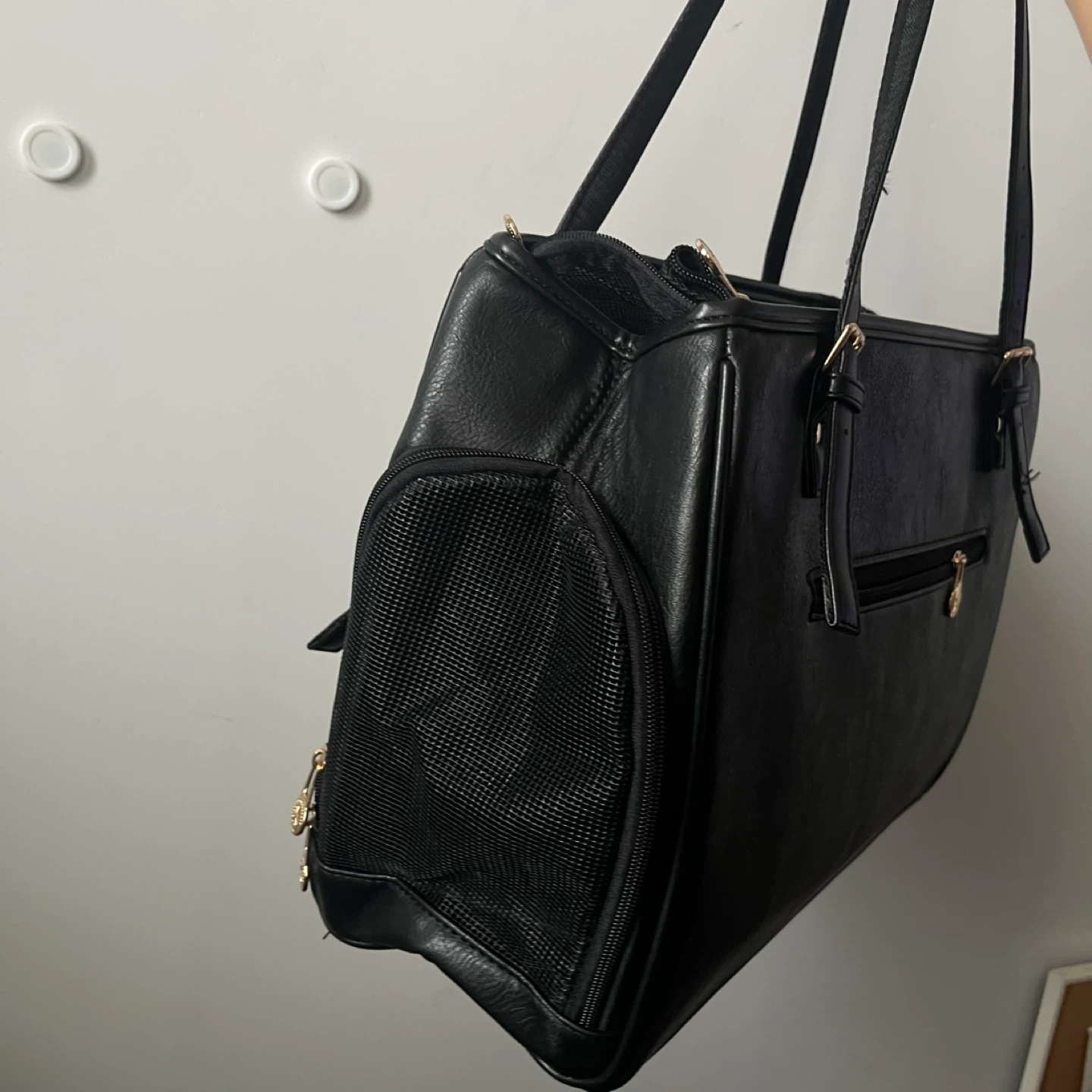 This is a pet carrier tote bag is designed for small pets. We used this for our small chihuahua when he was a baby, he’s now bigger. This bag is in fair condition