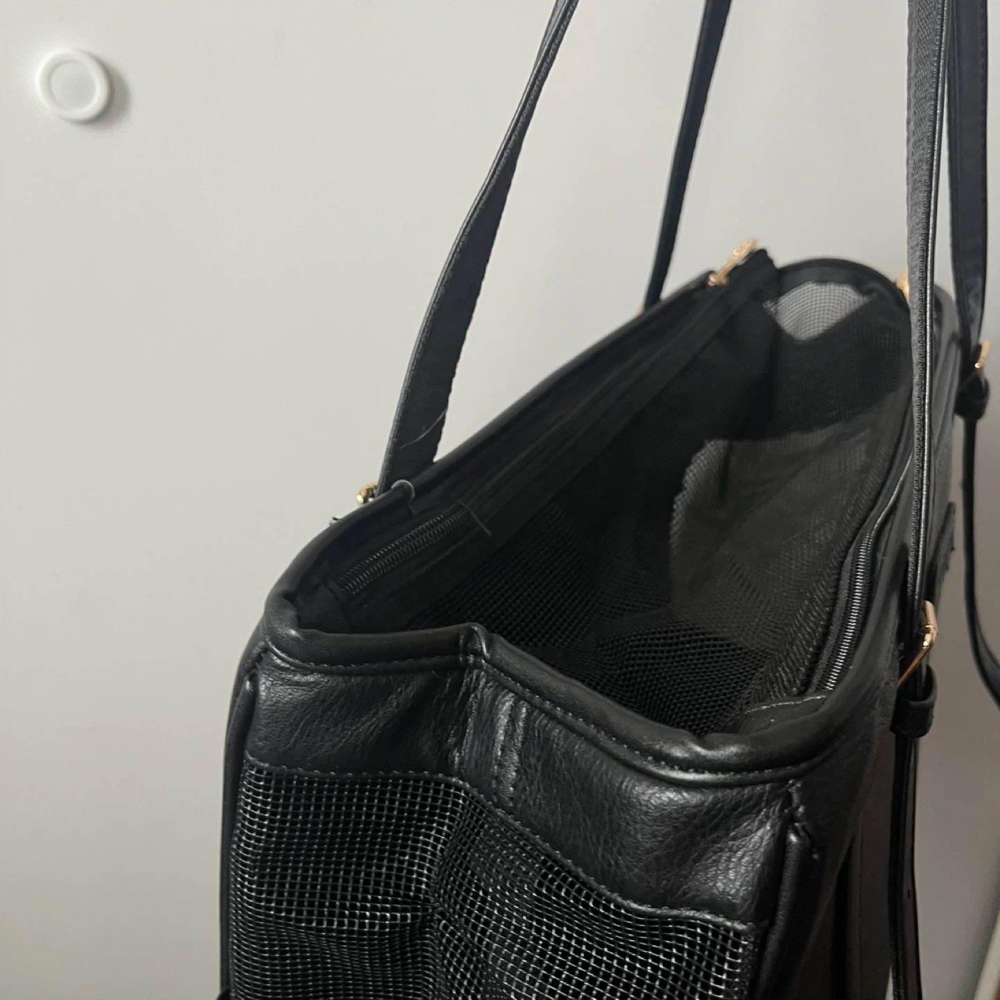 This is a pet carrier tote bag is designed for small pets. We used this for our small chihuahua when he was a baby, he’s now bigger. This bag is in fair condition
