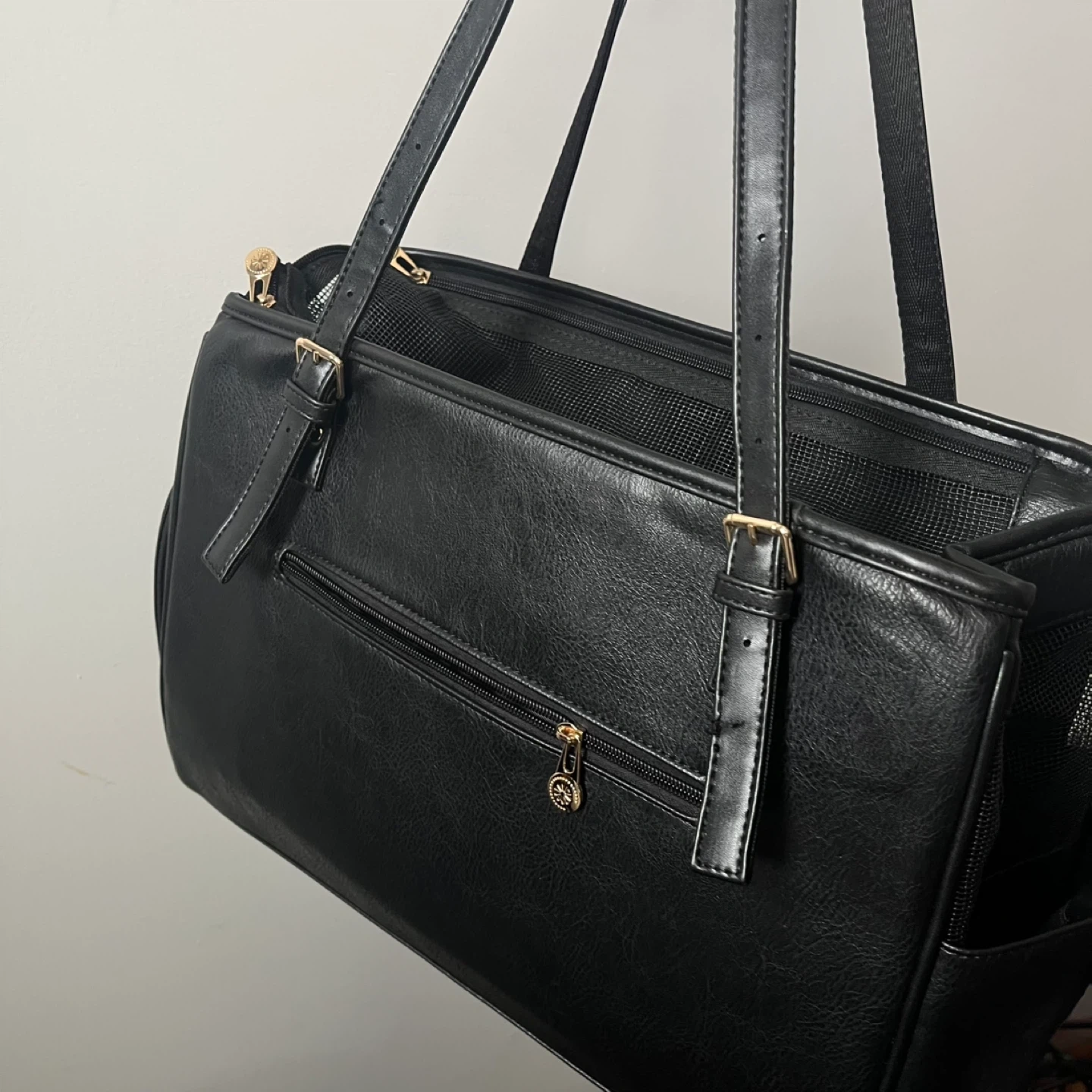 Leather Black pet carrier for small dogs