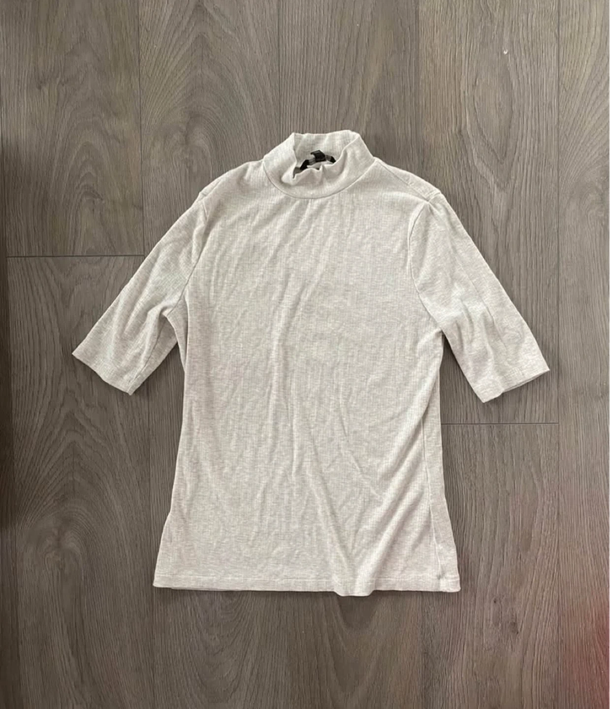 Banana Republic 1/2 sleeve ribbed mock neck top 66% rayon/viscose, 14% spandex/elastane Size: S Colour: light cream with a melange pattern washed, maybe worn once and then was just in storage Pick up in Liberty Village at King x Dufferin intersection