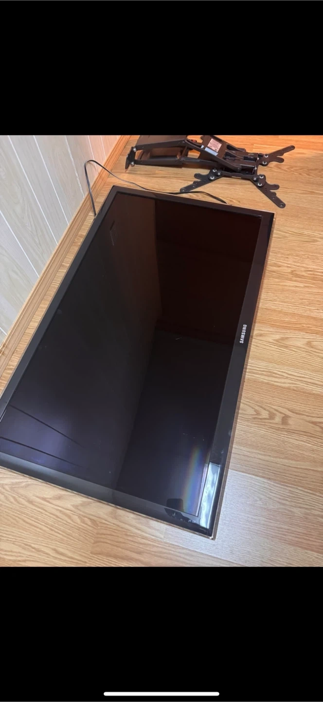 Samsung 48 inch size flat-screen TV with an adjustable wall mount and remote. Mount is compatible with most TVs.Not a smart-tv.