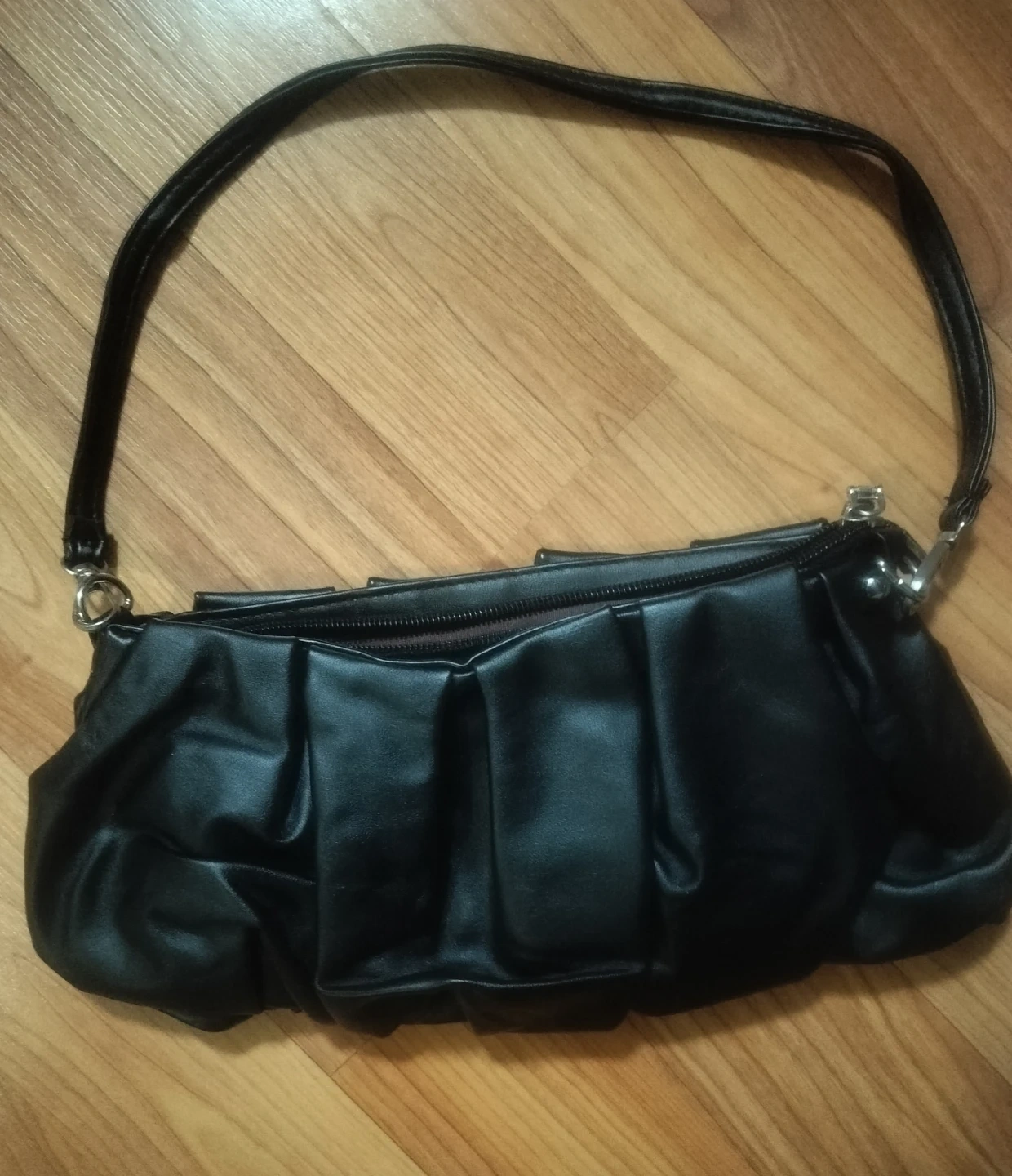 Buy & SellBlack Pleated Shoulder BagBlack Pleated Shoulder Bag$20This black shoulder bag has a ruched, pleated design. It's made of faux leather and features a zip closure. The interior is lined with fabric.WHERE TO MEETSt.Helens churchView MapSELLERverifiedMichaelLindenwood1386 reviews0 chats·0 favorites·3 viewsSEND CHAT TO SELLERHi Michael! I’m interested in your listing.Hi Michael! I’m interested in your listing.Get the Karrot app to chatSign In to chat