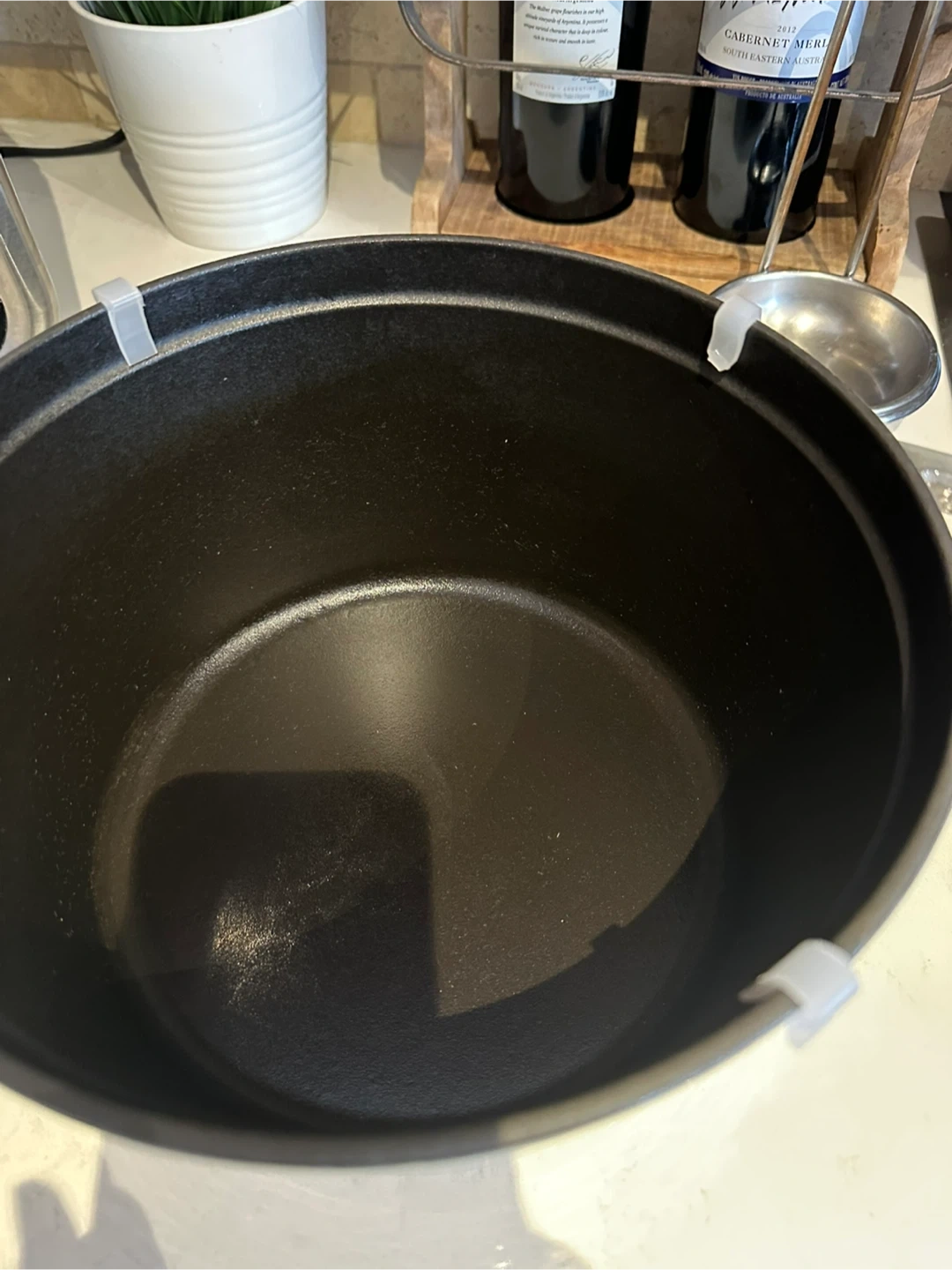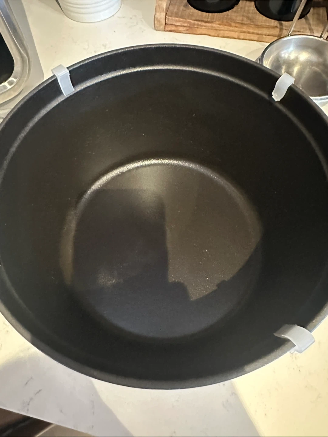 Textured black matte enamel interior requires no seasoning and ensures exceptional browning, heat retention and distribution