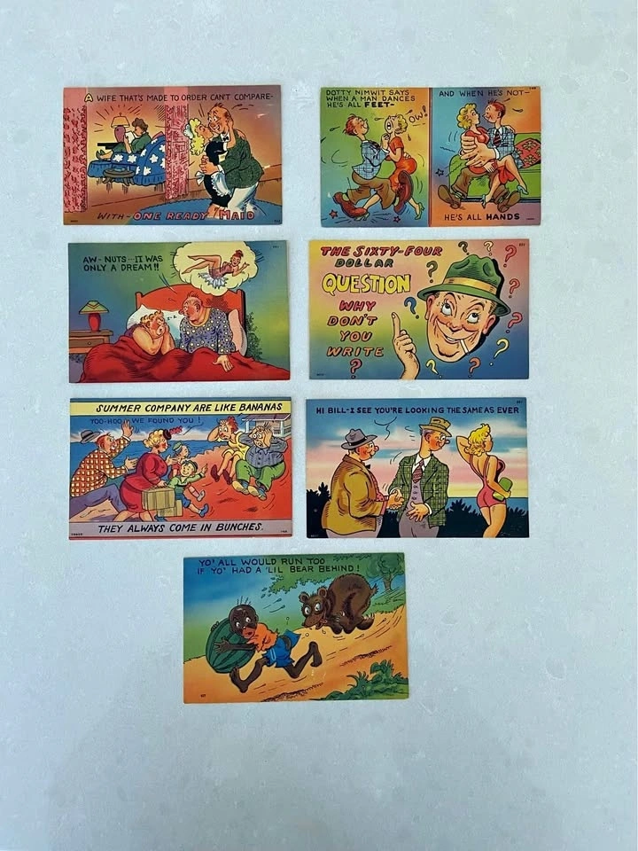 Buy & Sell7 Vintage Tichnor Quality Views Adult Humour Postcards7 Vintage Tichnor Quality Views Adult Humour Postcards$10Pick up in south east Ajax. Cash please. $25 for all 7.WHERE TO MEETCheck LocationView MapSELLERWendy LeeAjax Public Library150 reviews0 chats·0 favorites·5 viewsSEND CHAT TO SELLERHi Wendy Lee! I’m interested in your listing.Hi Wendy Lee! I’m interested in your listing.Get the Karrot app to chatSign In to chat