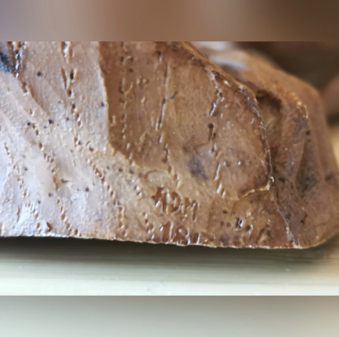 Signed or marked at the bottom (appears to read ADM with a date marking), adding to its character and uniqueness.