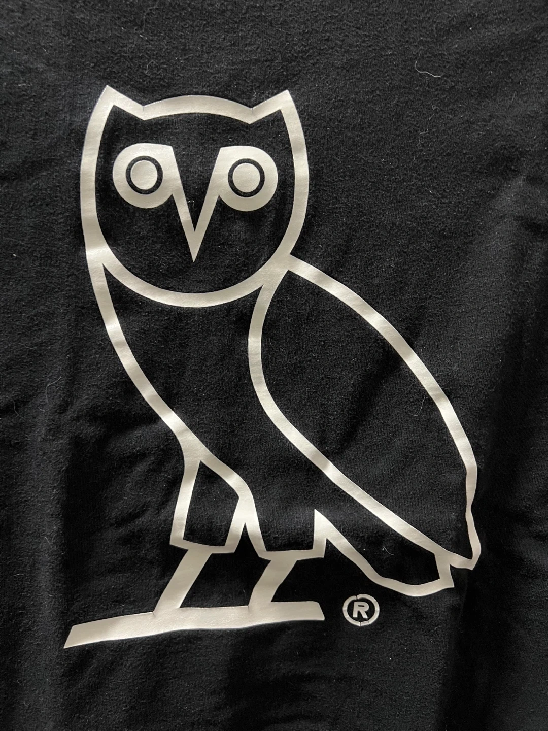 Black OVO t-shirt with the iconic owl logo. Size small and made in Canada. Cotton material.