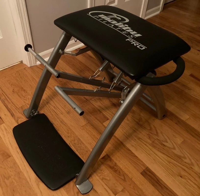 It is compact and foldable for easy storage. It's made of metal and padded faux leather. Includes foot platform and handles for various exercises.