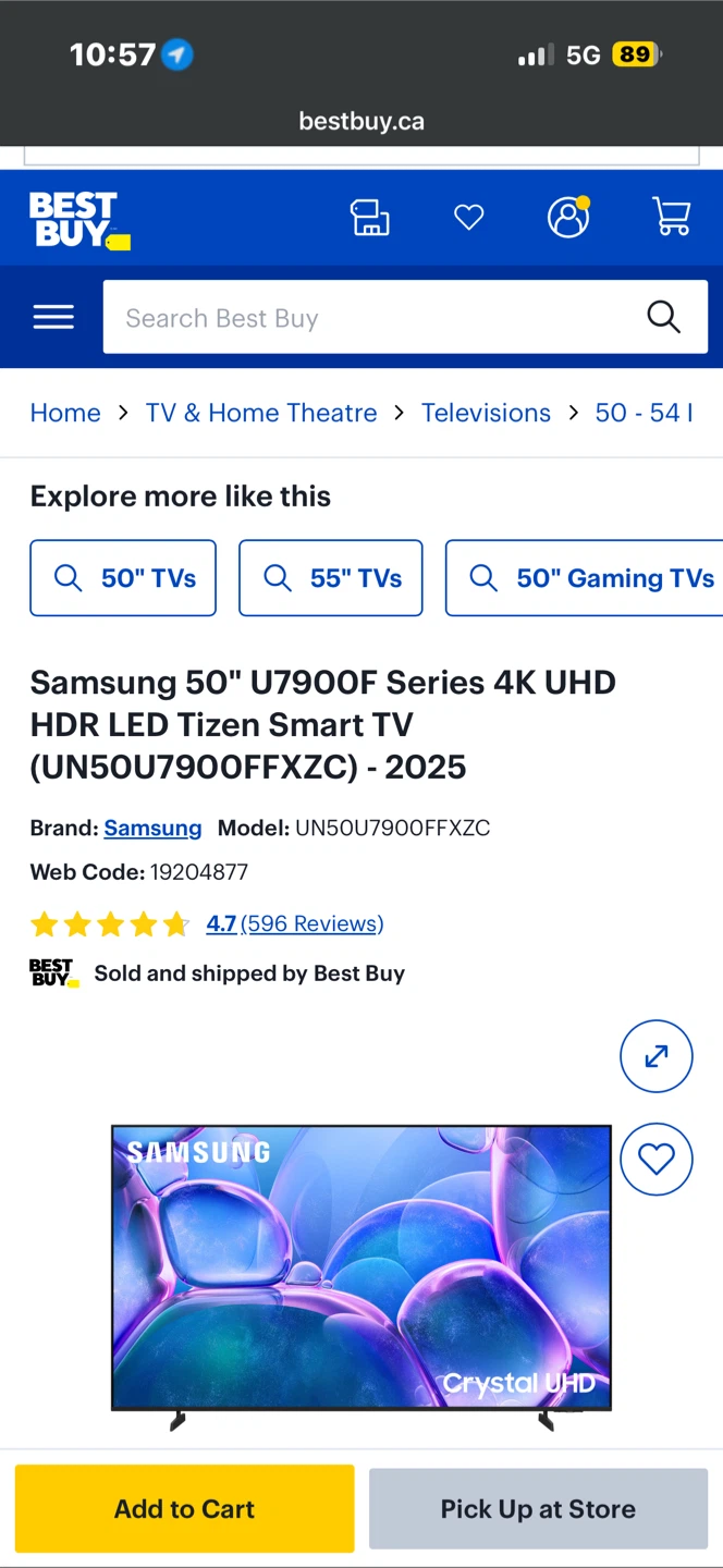 Upgrade your home setup with this factory-sealed, brand new Samsung 50” U7900f Crystal UHD TV. Perfect for movies, gaming, and everyday viewing with rich colors and stunning 4K clarity.
