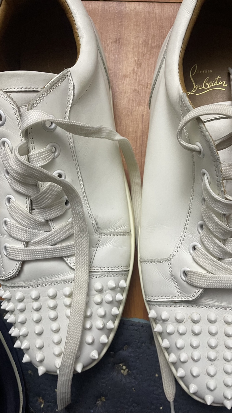 1 / 11 / 1Buy & SellChristian Louboutin Louis Junior Spiked SneakersChristian Louboutin Louis Junior Spiked Sneakers$499White leather sneakers. Studded detail. Lace-up closure.Size11.5BrandChristian LouboutinWHERE TO MEETCheck LocationView MapSELLERValAlderwood180 reviews0 chats·0 favorites·25 viewsSEND CHAT TO SELLERHi Val! I’m interested in your listing.Hi Val! I’m interested in your listing.Get the Karrot app to chatSign In to chat