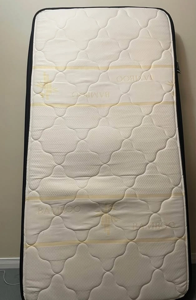 Selling a clean and well-kept twin mattress (6-inch thick). Always used with a mattress protector. Minor cosmetic issue: a small seam stitch opened at one corner (shown in photos). Does not affect comfort or support. Selling because I’m moving. Ideal for student housing or guest room.