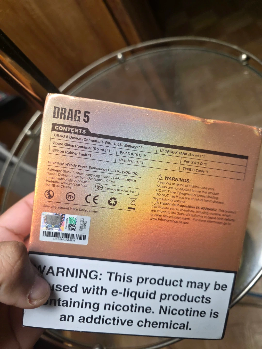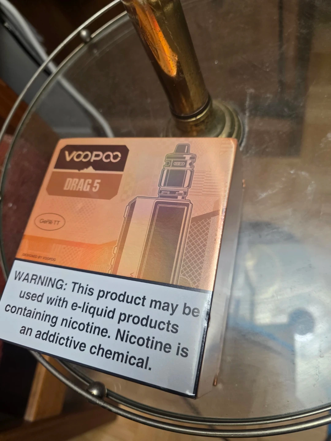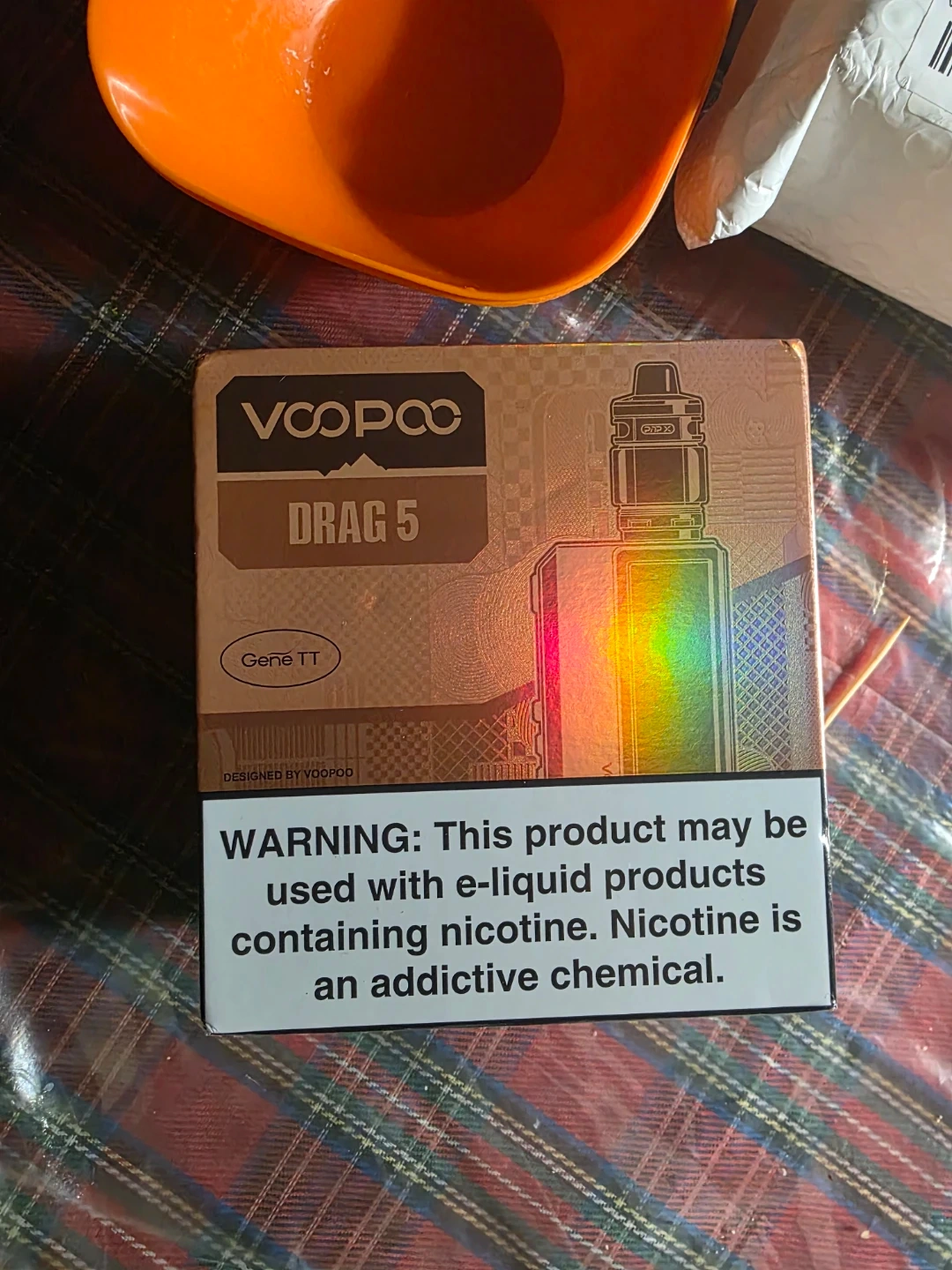 VOOPOO Drag 5 Kit in Sunset Orange. It's a compatible with 18650 battery device with a PnP X Platform and Smart Leather Cover. Battery evaluation system included.