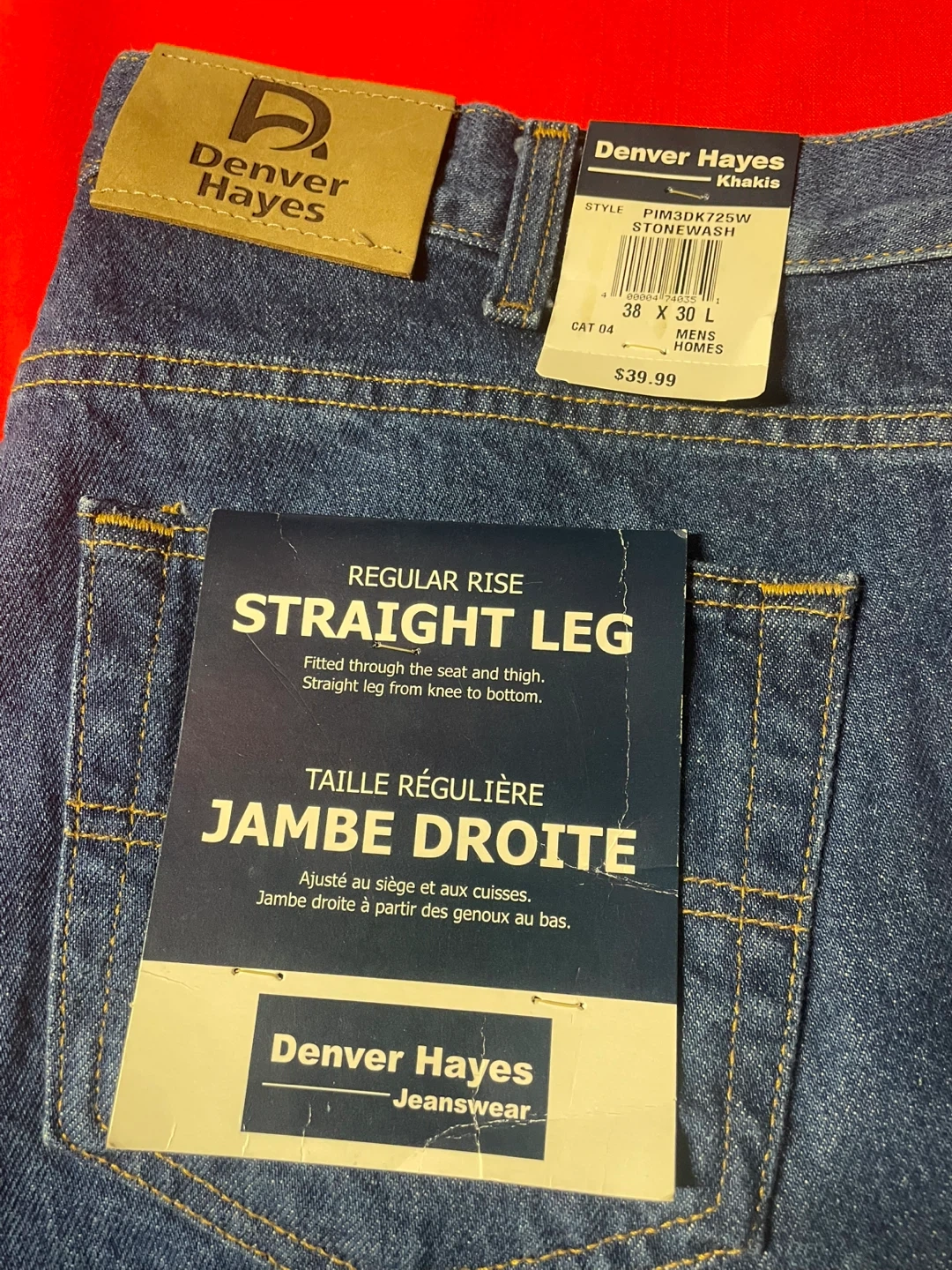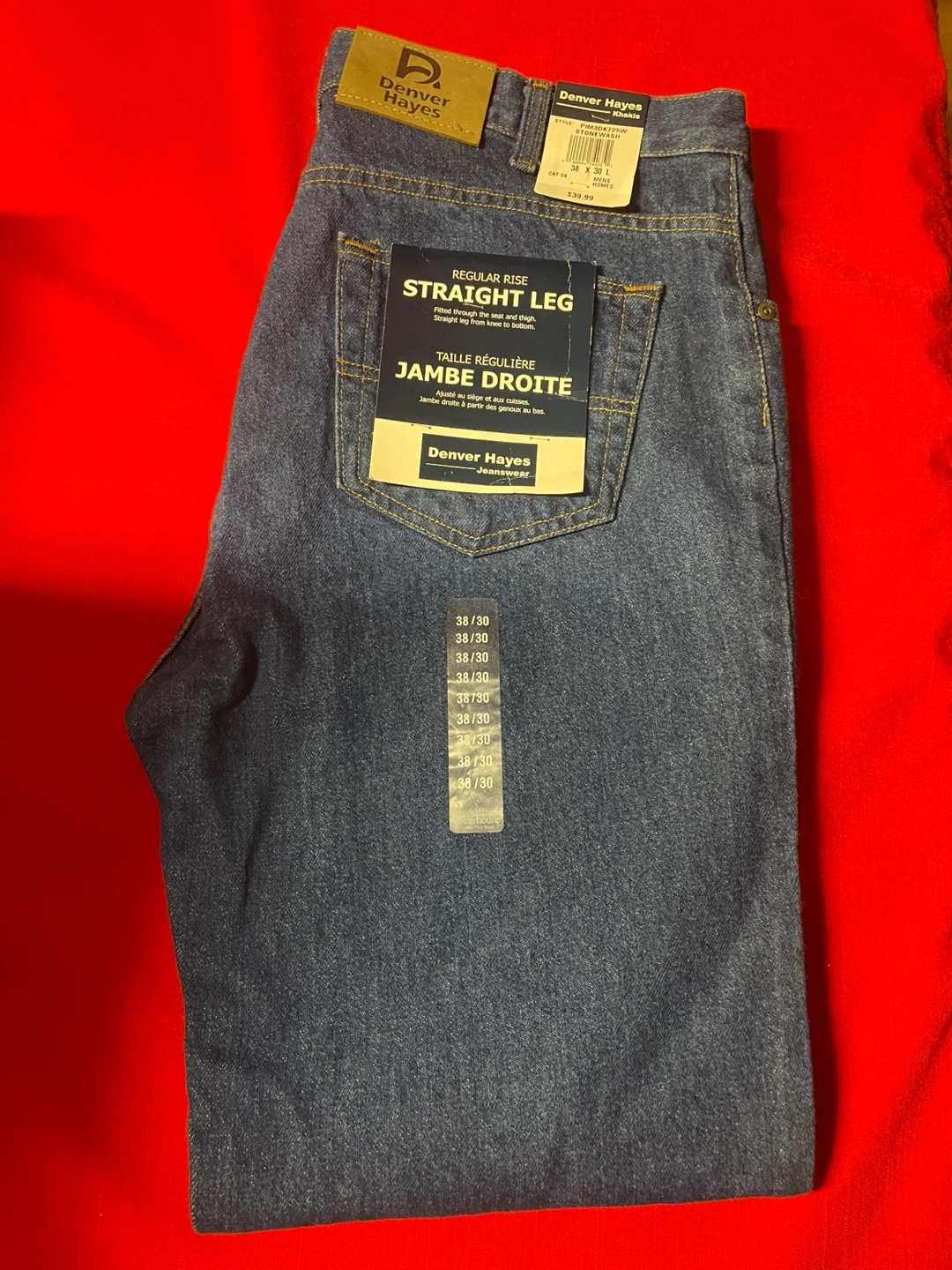 These Denver Hayes jeans are brand new with tags! They are a size 38x30 and have a regular rise with a straight leg fit. The original price was $39.99