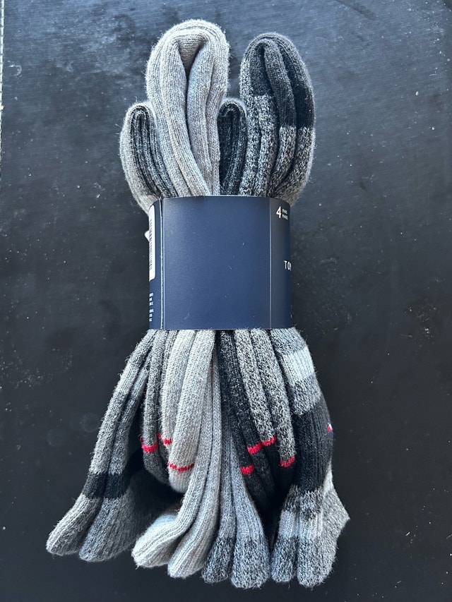 Excellent stretch for long lasting comfort. Over the calf fit with a ribbed band. You get 4 pairs, and each pair has a different pattern. Made from a Cotton Blend: 70% Polyester, 28% Cotton, 2% Spandex. Fits Shoe Sizes: 7-12.