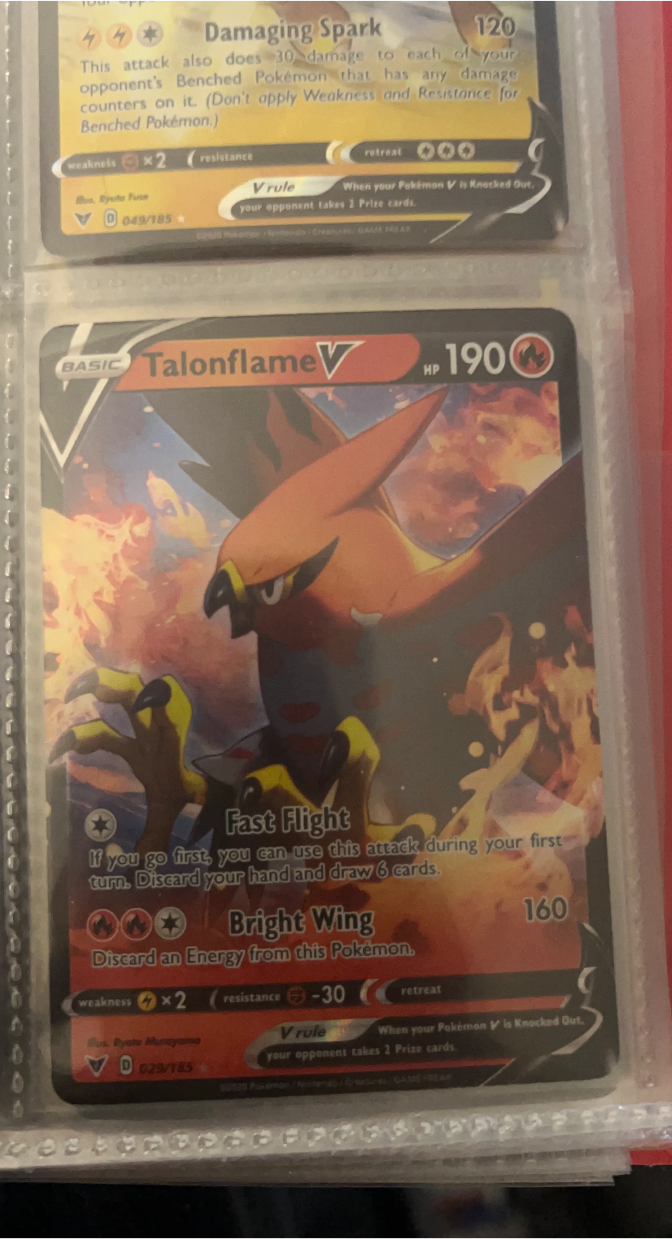 Buy & SellTalonflame V Pokemon CardTalonflame V Pokemon Card$10Selling a Talonflame V Pokemon card. It has 'Fast Flight' and 'Bright Wing' attacks. The card number is D 029/185. Great for any collector!WHERE TO MEETCheck LocationView MapSELLERLaceKennedy262 reviews0 chats·0 favorites·10 viewsSEND CHAT TO SELLERHi Lace! I’m interested in your listing.Hi Lace! I’m interested in your listing.Get the Karrot app to chatSign In to chat