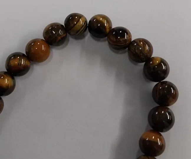 Brown and gold coloured tiger's eye stone beaded bracelet. It's a stretch bracelet with polished round beads. Beads approximately 10mm.