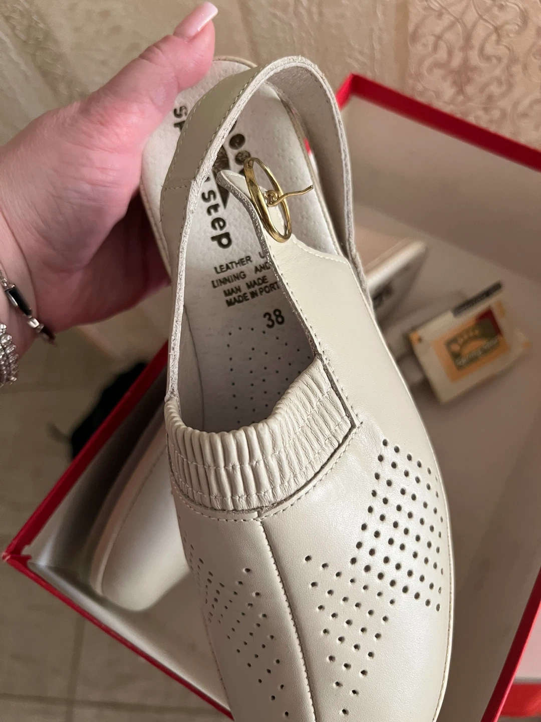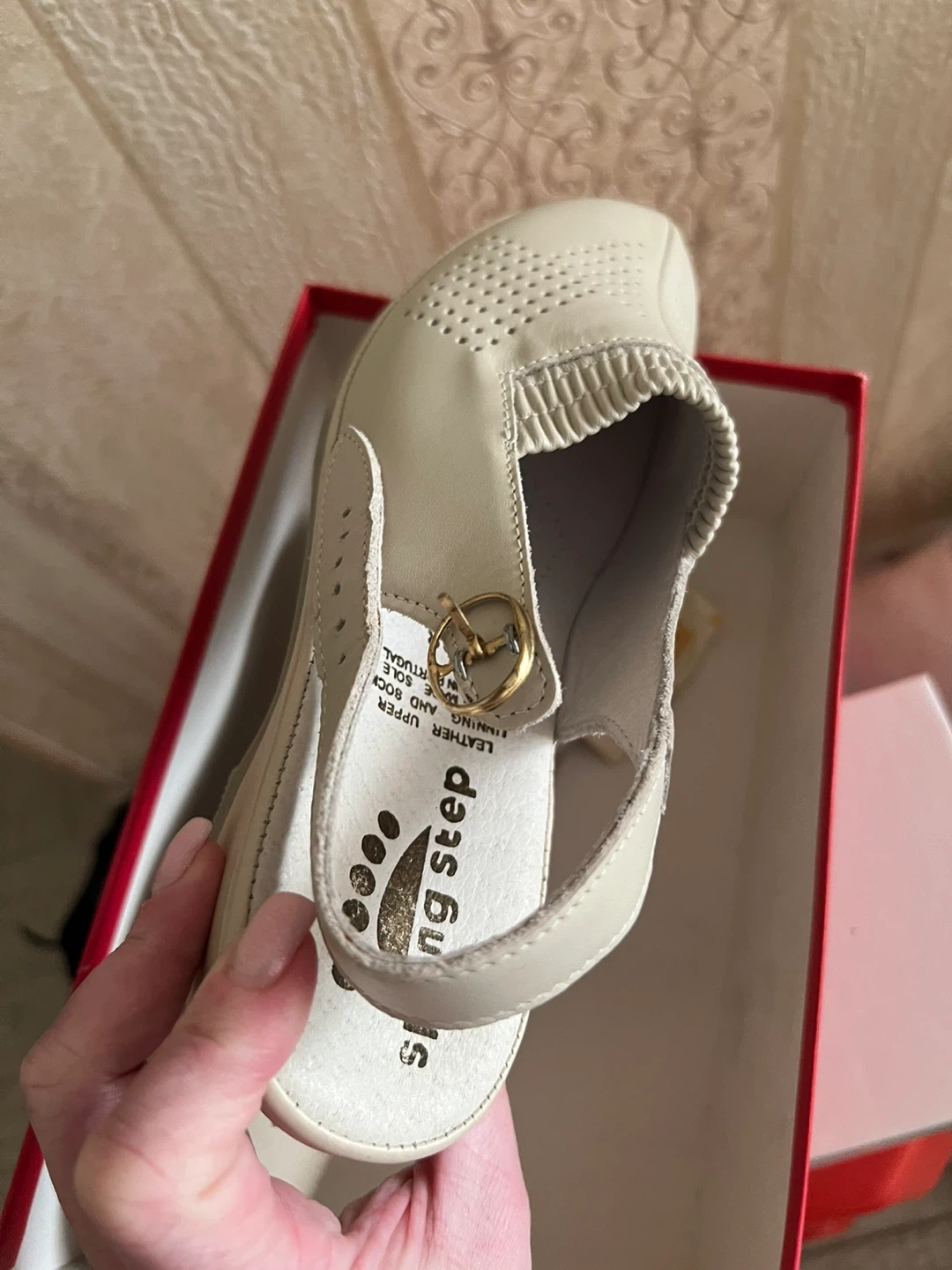 Spring Step Women's Beige Leather Slingback Shoes - Size 38
