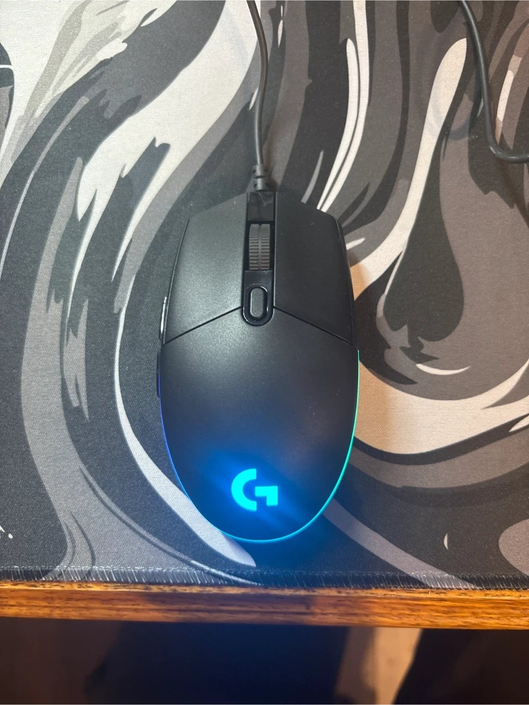 This is a Logitech gaming mouse with RGB lighting. It's a wired mouse and it's black. It has a scroll wheel and multiple buttons. I have used only 2 times. It is brand new condition.