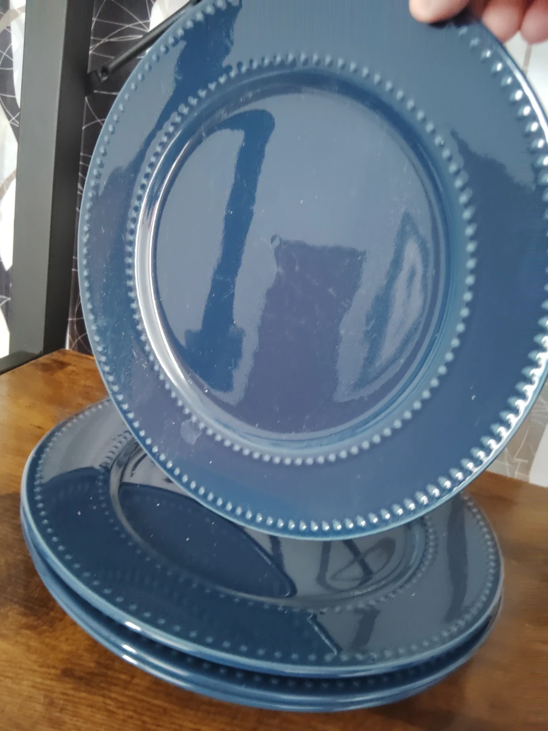 Set of 4 Dark Blue Dinner Plates with Beaded Rim
