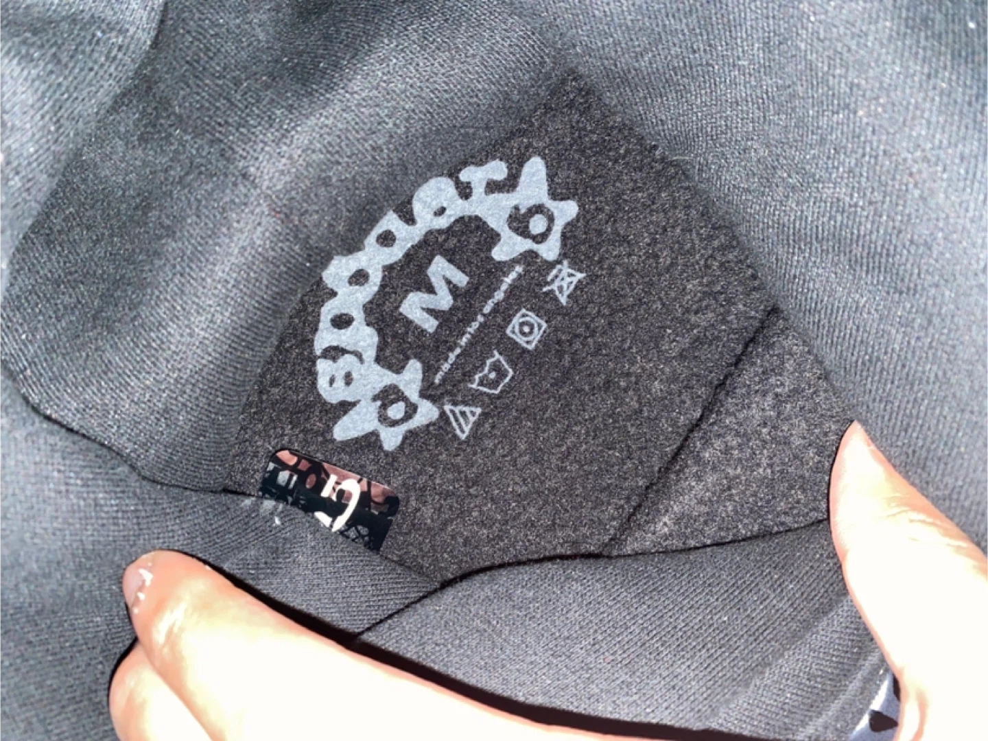 Sp5der black hoodie with a white spiderweb graphic on the front. It's a size medium. Made in Los Angeles.