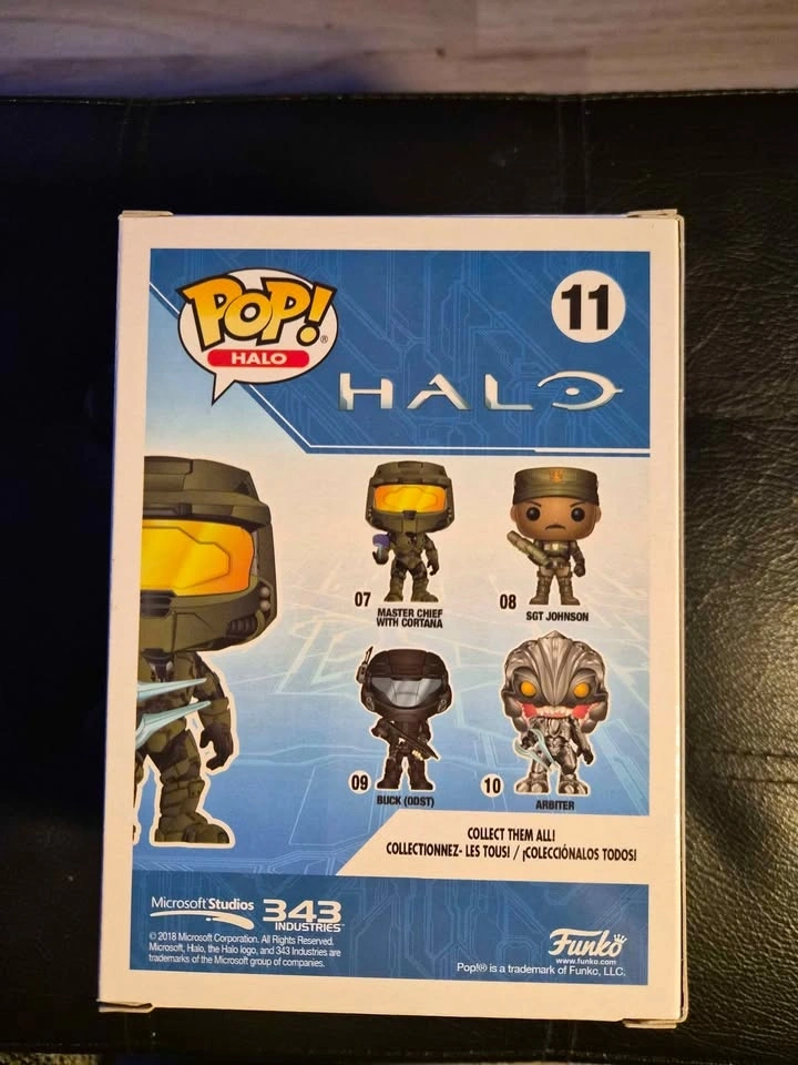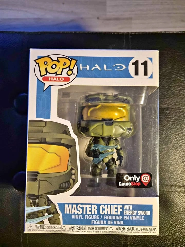 Collectible Funko Pop! figure of Master Chief from Halo, number 11. This is a GameStop exclusive edition. It is still in its original box and has never been opened.