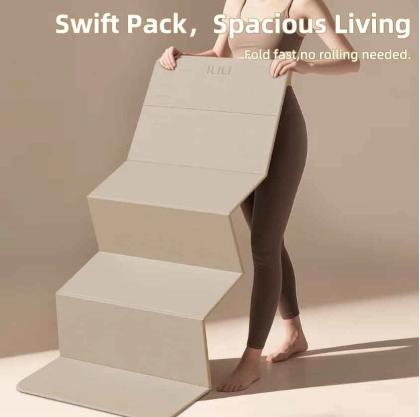 ILILI Foldable Yoga Mat - 10mm Thick, TPE, Extra Long
