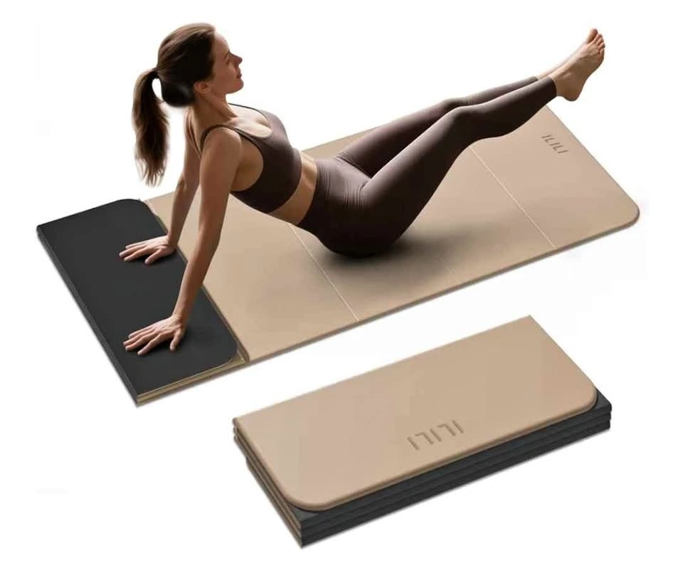 Brand new. Retail price - $70 plus tax. Size: 75"L x 26"W. Featuring innovative folding technology, this ILILI dual-color yoga mat can be effortlessly folded into a compact size. This makes it a breeze to store in small spaces and carry around, ensuring you can enjoy a comfortable yoga experience anytime, anywhere, whether it's for an outdoor adventure or a home workout.
