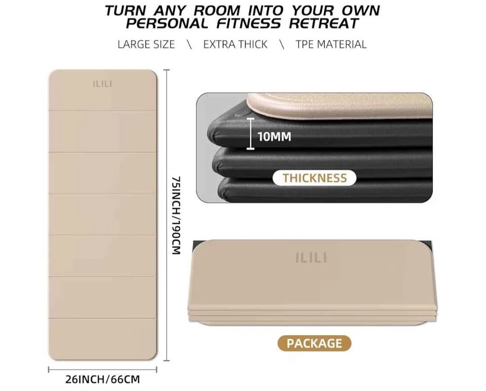 ILILI Foldable Yoga Mat - 10mm Thick, TPE, Extra Long
