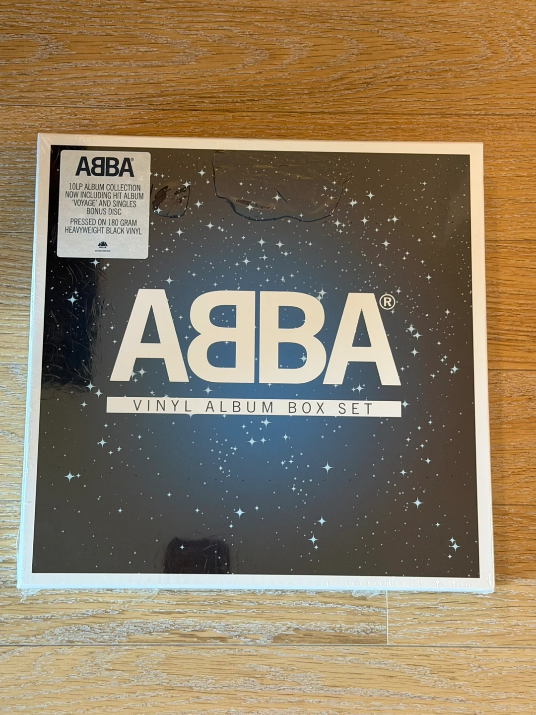 This is the ABBA Vinyl Album Box Set featuring 10 LPs. It includes all their hit albums, plus Voyage and a bonus disc. The records are pressed on heavyweight black vinyl.
