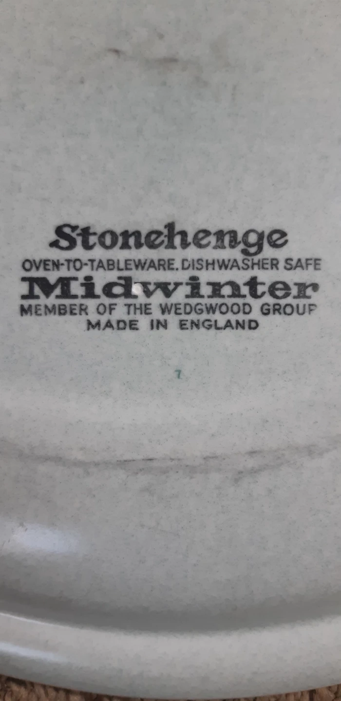 This Midwinter Stonehenge serving platter features the "Blue Dahlia" pattern.