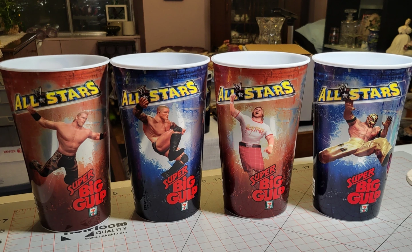 70Selling a set of four Collectible WWE All Stars Super Big Gulp cups! They feature Legend Rowdy Roddy Piper, Superstar Rey Mysterio, Legend Shawn Michaels and Superstar Randy Orton and are Brand New, never used. Perfect for any wrestling fan or collector! Cash only please. Thanks.