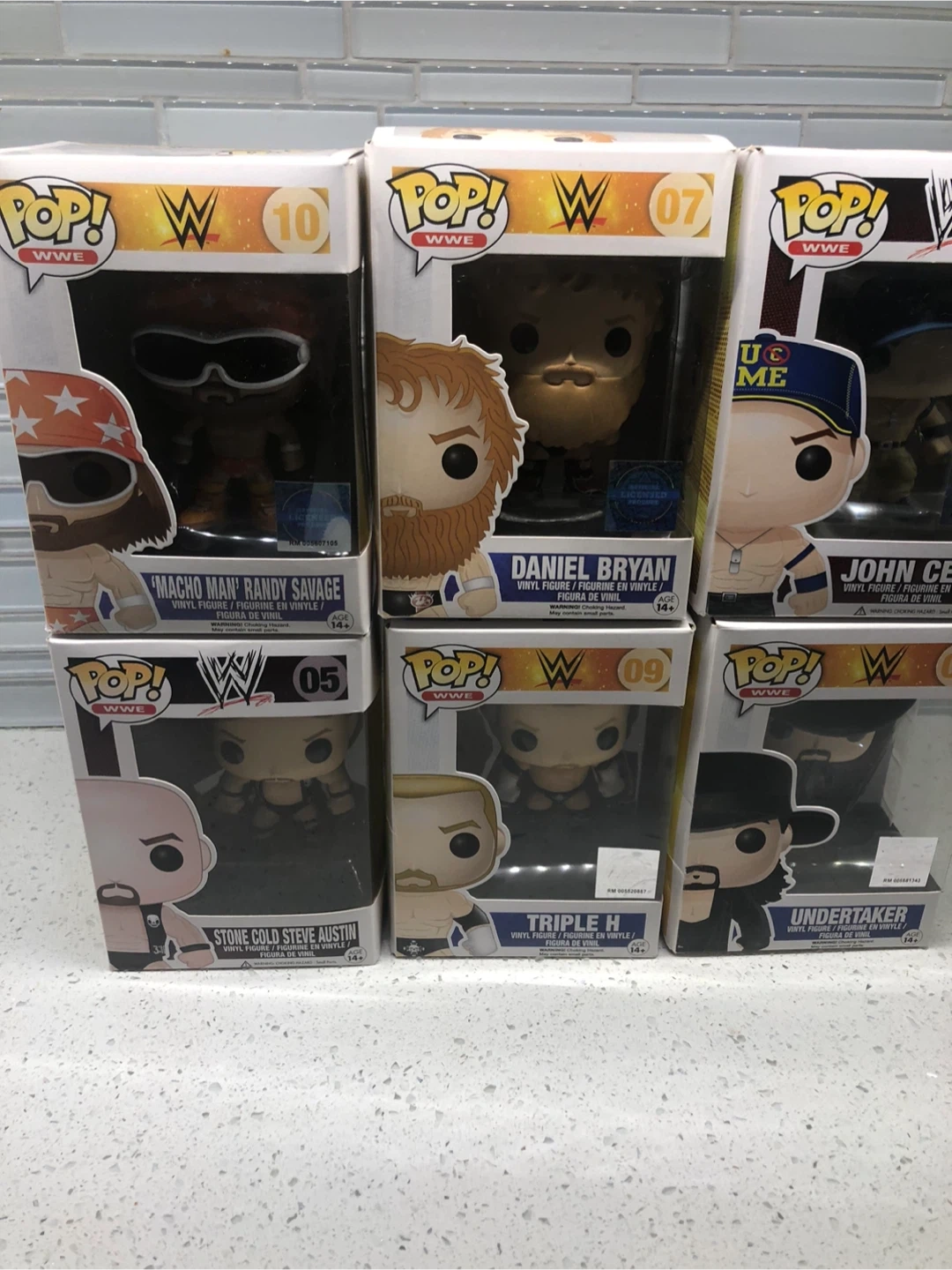 69Selling WWE Funko Pop vinyl figures. They are in great condition and come in their original boxes! Available characters include Stone Cold Steve Austin, Macho Man Randy Savage, Daniel Bryan, John Cena, Triple H, and Undertaker