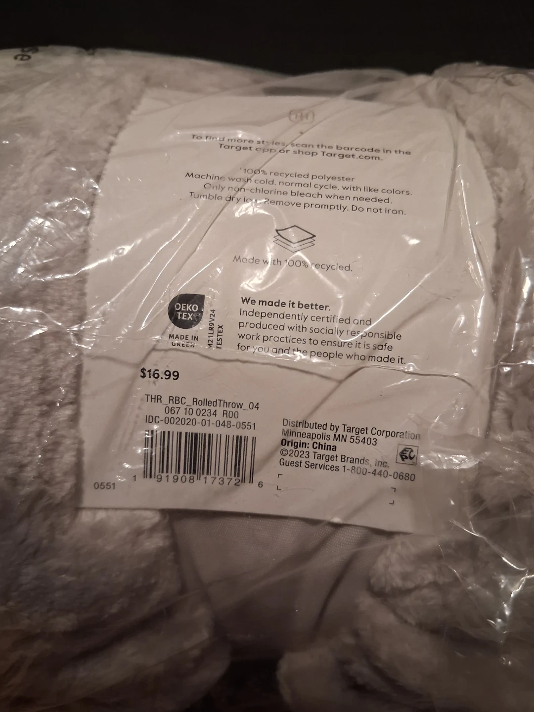 This Threshold throw blanket features a plush texture. It's made from 100% recycled polyester. Measures 50 by 70 inches. 🥕 🥕 🥕 🥕