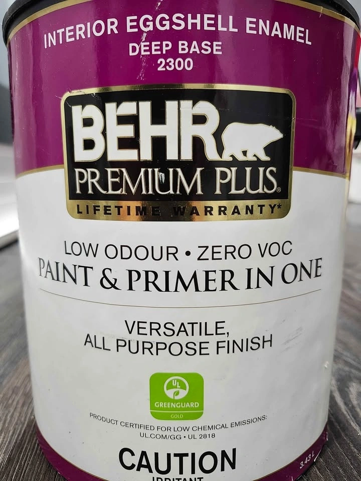 Brand new, unused Behr Premium Plus paint in Eggshell finish, Agate Green color. We changed our minds on the color for our project and couldn't return it to Home Depot. Feel free to message if you have any questions!