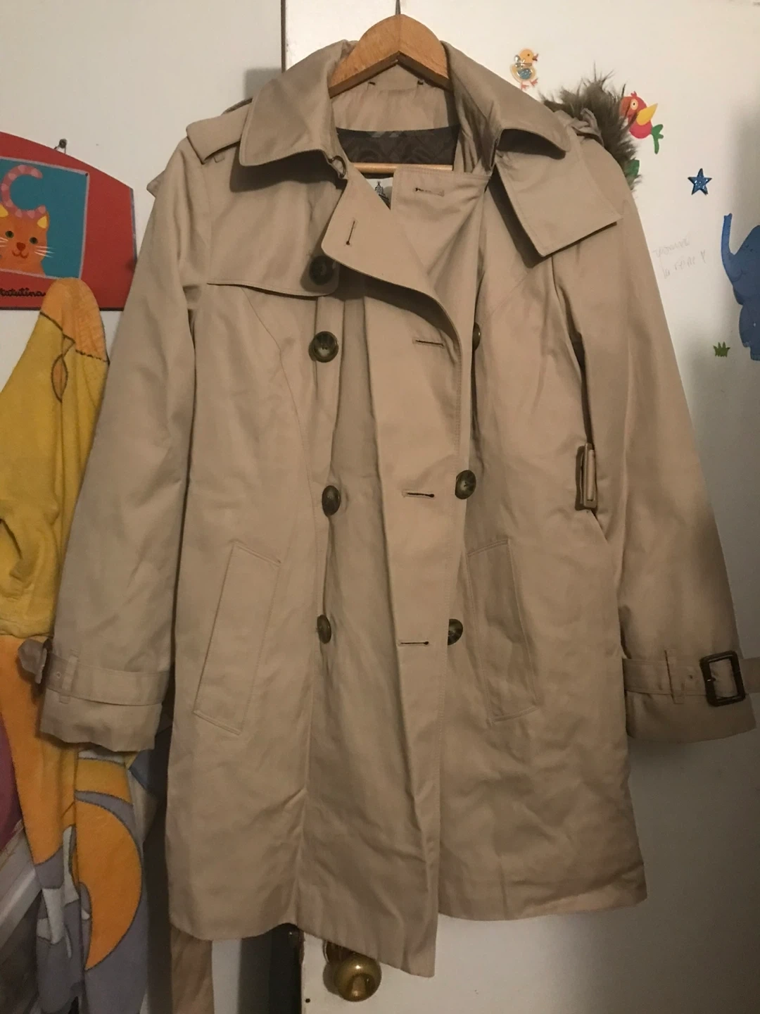 Trench London Fog Heritage, taille M/M. Couleur beige classique, avec une capuche ,Parfait pour les journées fraîches.