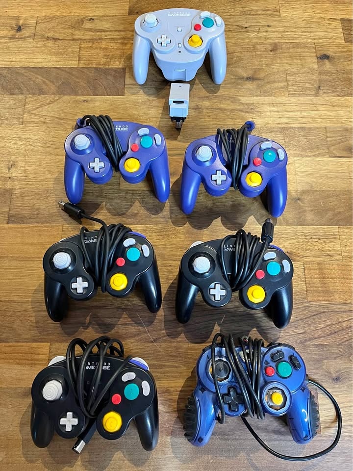 All controllers are tested, cleaned, and working. No stick drift, sticky buttons, or other issues noted on any of them. The MadCatz controller has bare wires sticking out at the top but works fine. Mad Catz controller - $15. Black OEM controllers - $30 each. Indigo OEM controllers - $35 each. Wavebird with receiver - $90. Pickup in Glenbrook SW - cash only please.