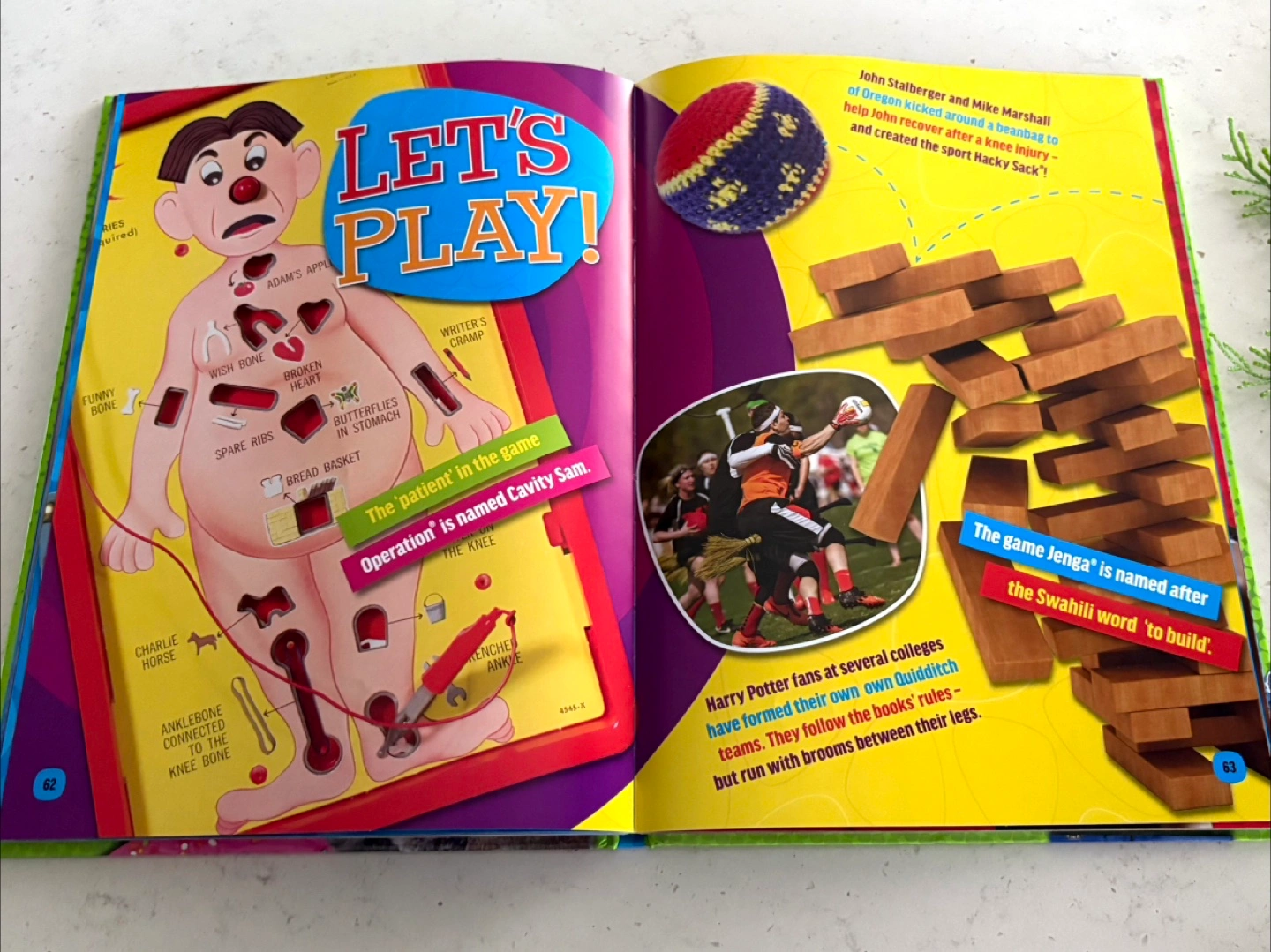 It features interesting trivia and games, including a look at the game Operation and Jenga.