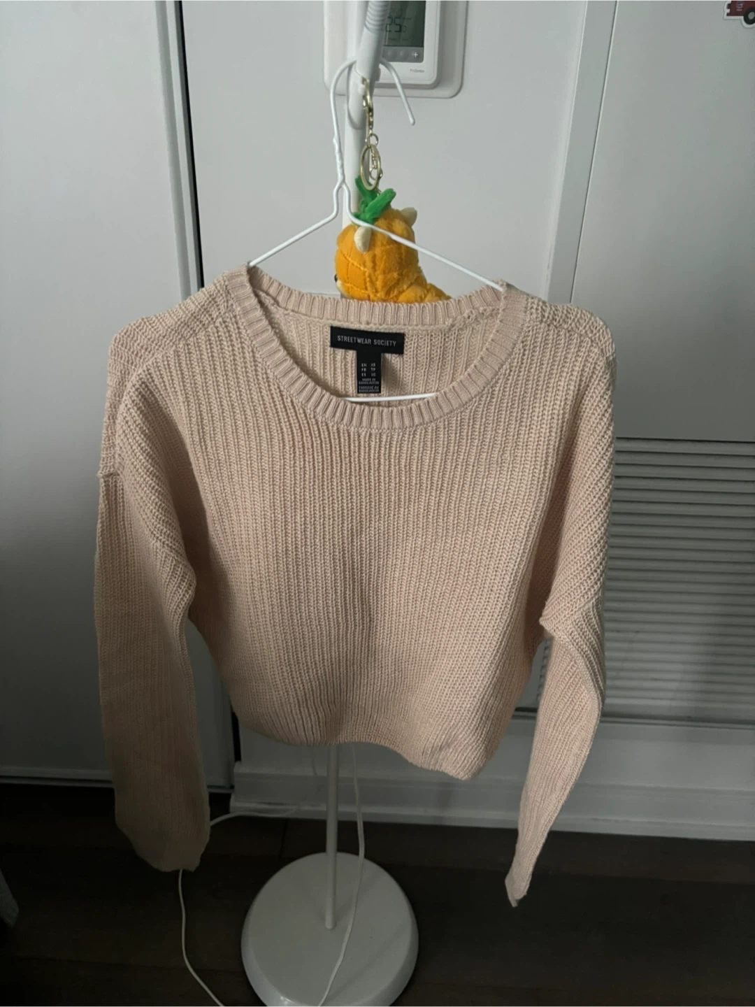 A comfortable beige knit sweater from Streetwear Society. It's made with a ribbed texture. This sweater is a great layering piece for cooler days!