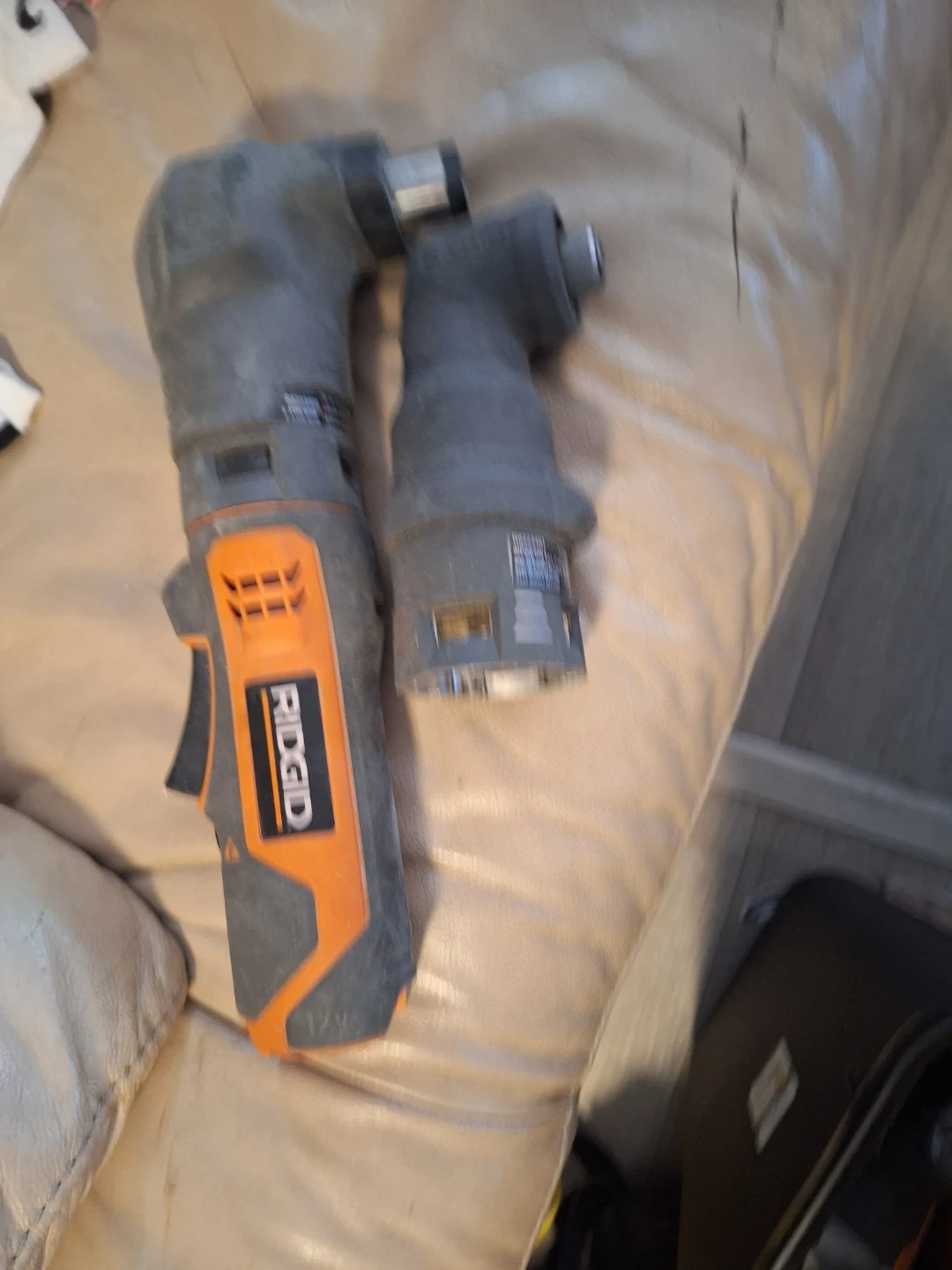 This is a RIDGID 18V cordless angle impact wrench. It's a tool for tightening and loosening fasteners in tight spaces. The tool is grey and orange.