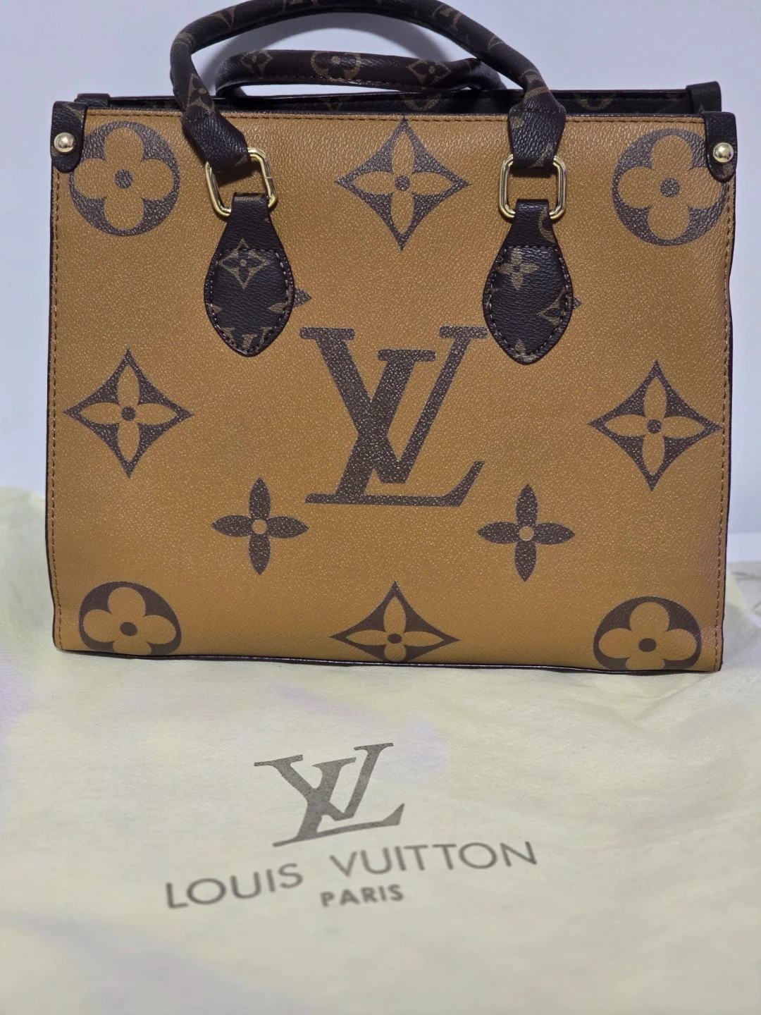 tote bag in monogram canvas. It features dual top handles and a detachable shoulder strap. This bag includes the dust bag for storage.
